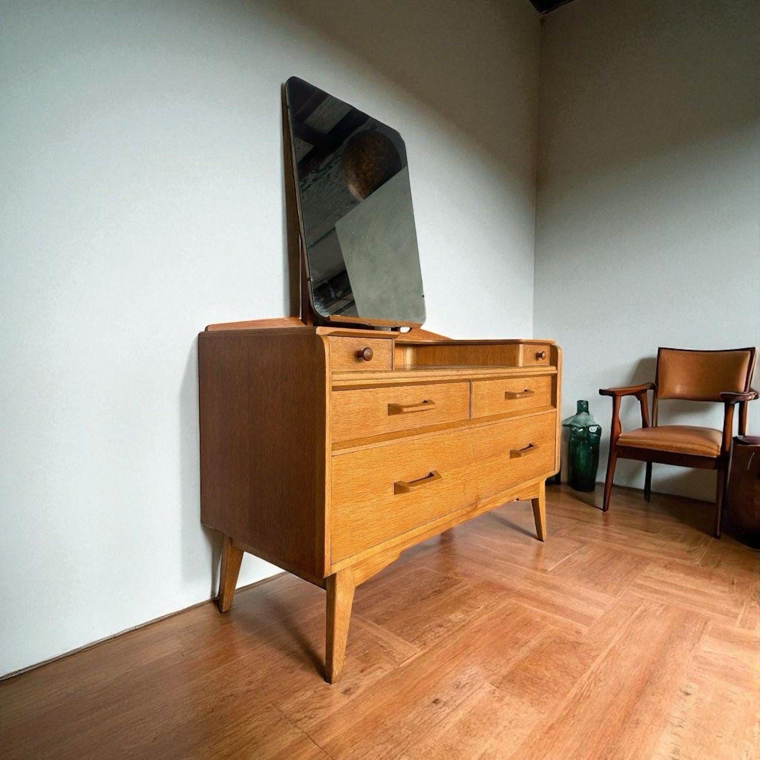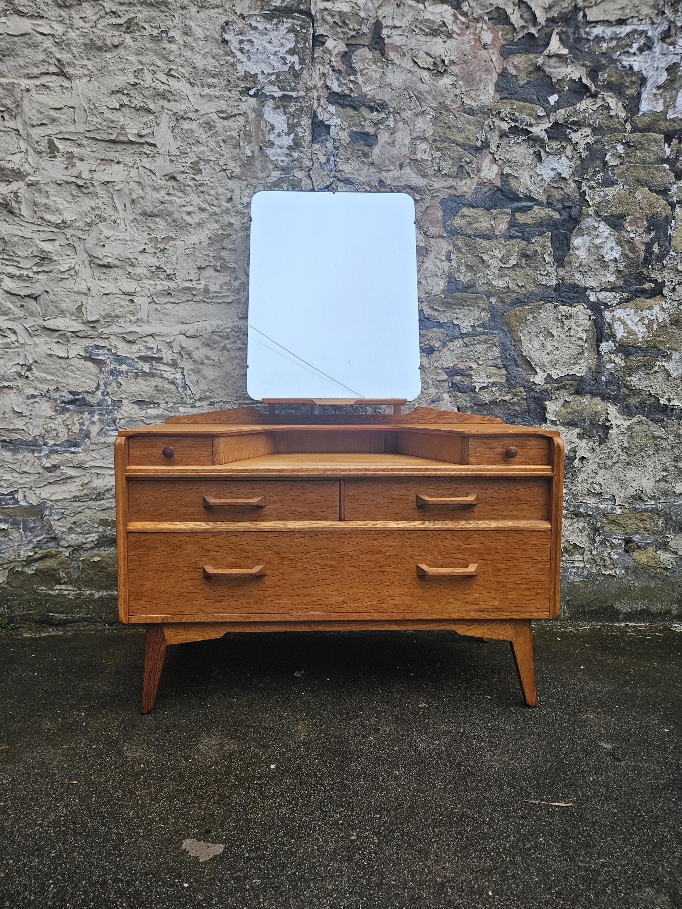 "Charming mid-century G-Plan 'Brandon' dressing table in light oak with original tilting mirror...