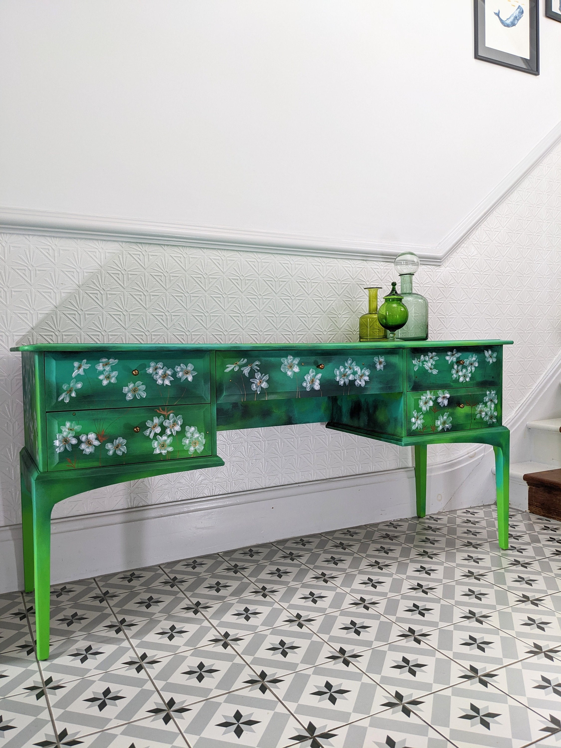 Anemone Garden ~ Hand Painted Vintage Stag Dressing Table