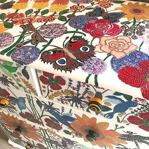 SOLD handmade furniture Unique Hand Painted 5 Drawer Chest of Drawe...
