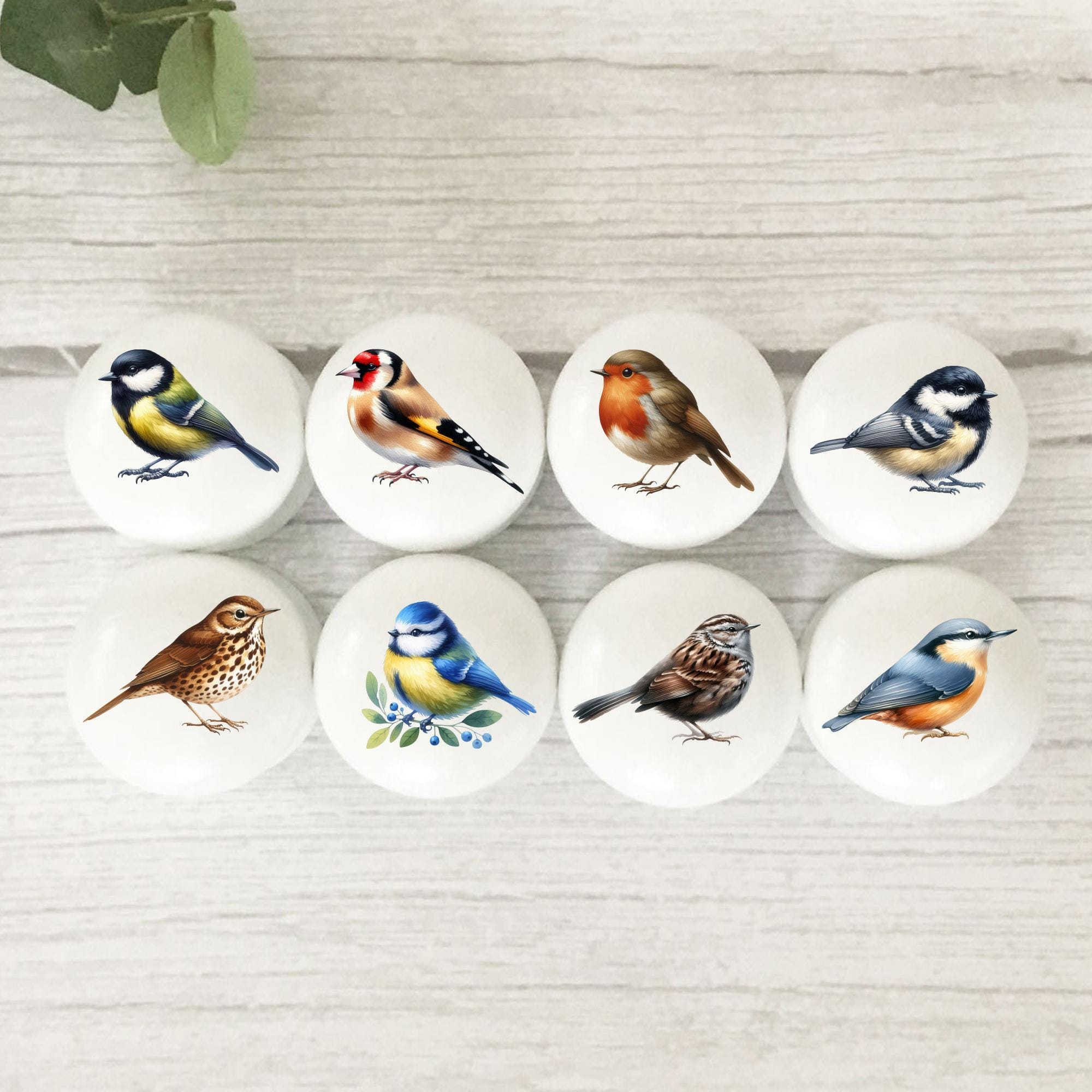 Bird Drawer Knobs: Solid Beech Wood, Garden Bird Handles