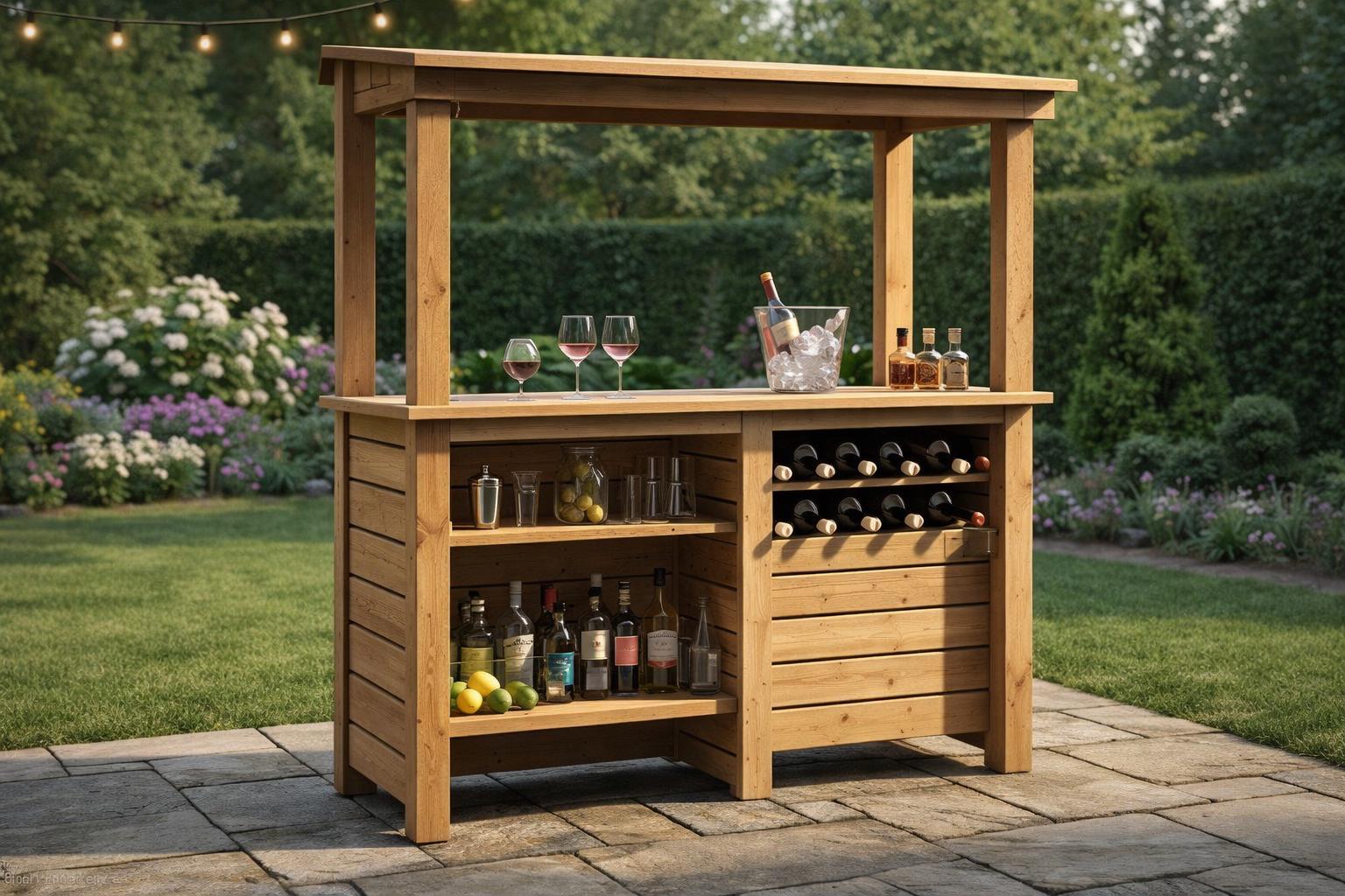 Build a stylish outdoor garden bar with these detailed DIY woodworking plans. This wooden bar is per...