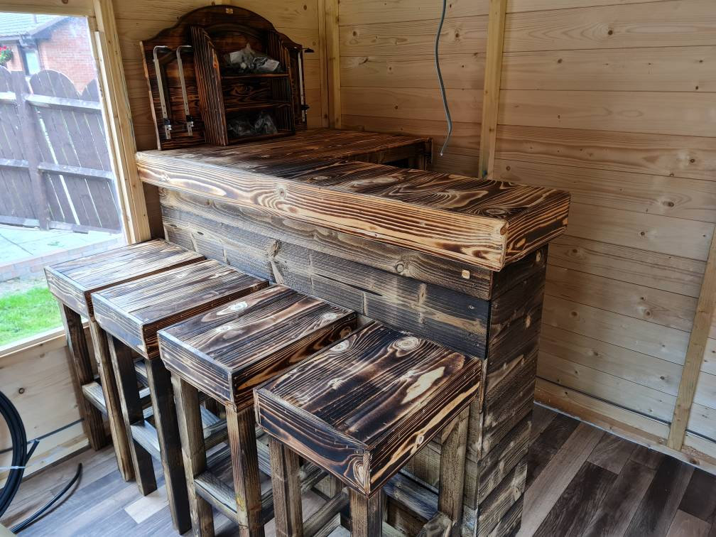 Wooden home bar, L shape bar, man cave bar, summerhouse bar, garden bar, home bar, outdoor bar A ver...