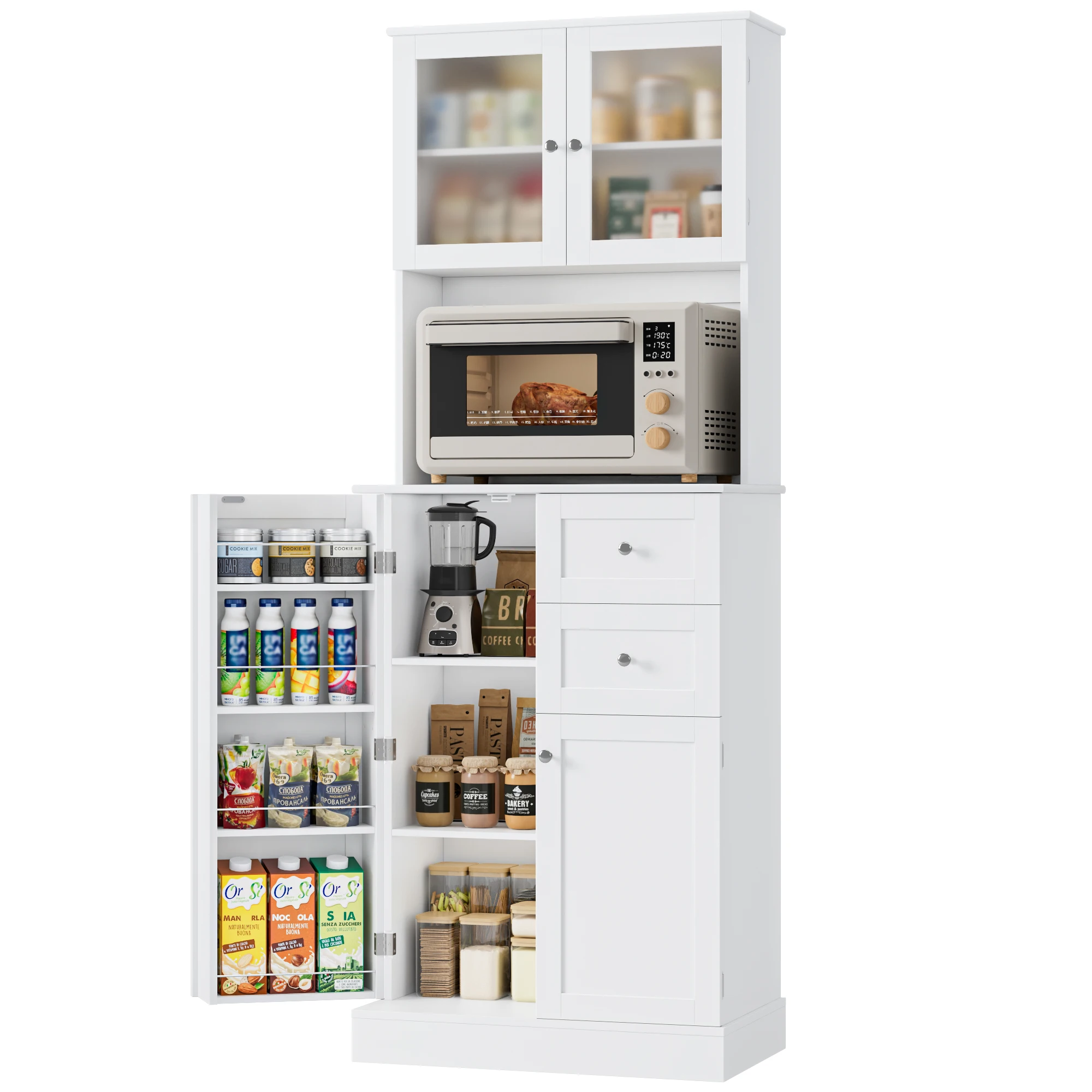 Kitchen wardrobe, 180 cm buffet wardrobe with 2 glass doors, high wardrobe with 4 doors and 2 drawer...