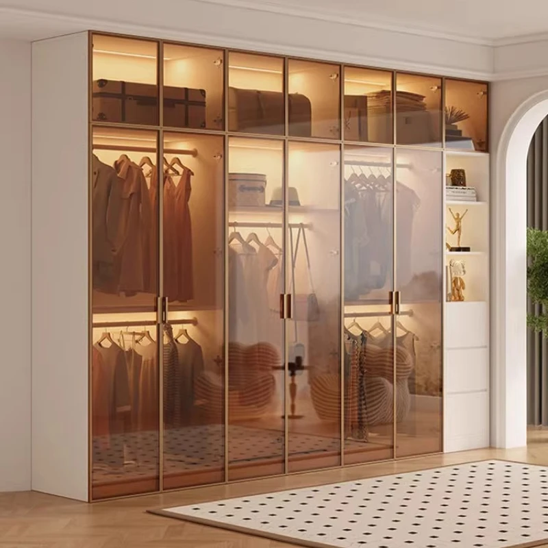 Luxury Wardrobe Light Glass Door Modern Bedroom Swing Door Solid Wood Storage Combination Glass Door...