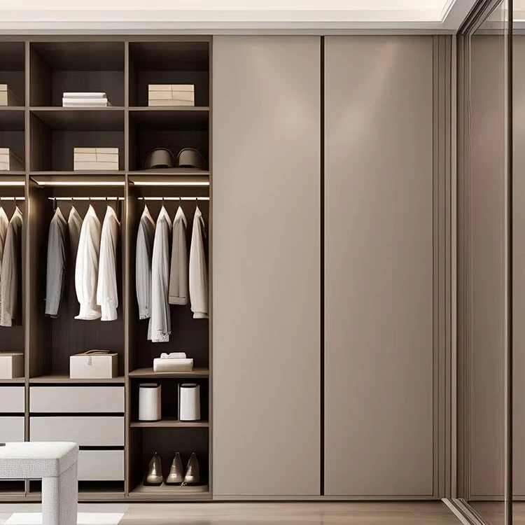 Luxury Wardrobe Light Glass Door Modern Bedroom Swing Door Solid Wo...