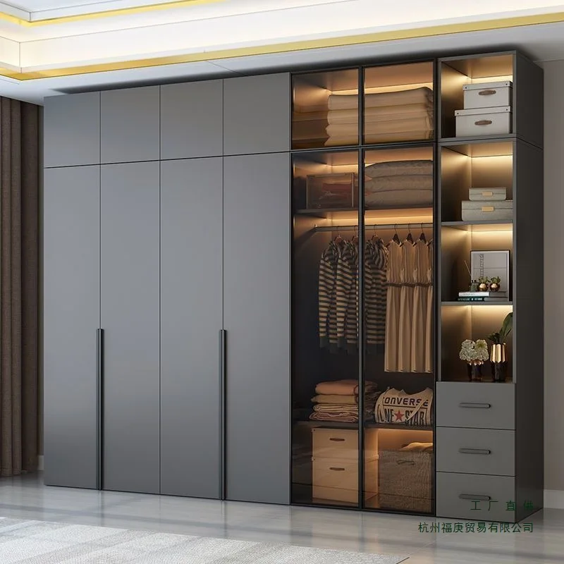 storage cabinet small apartment large wardrobe solid wood sliding door glass wardrobe bedroom househ...