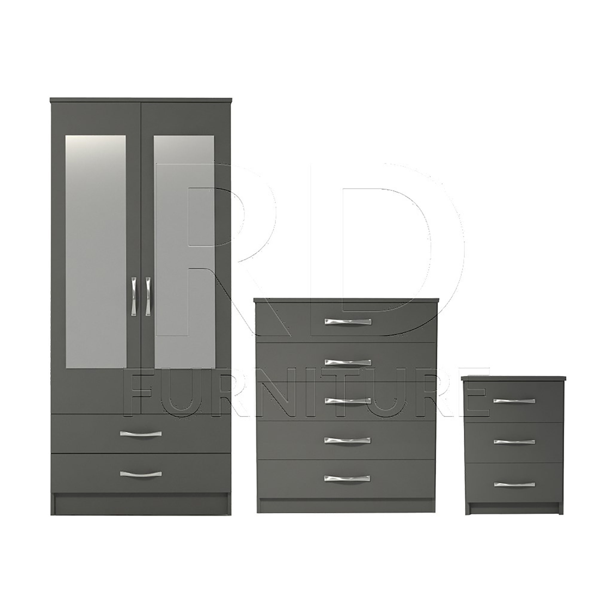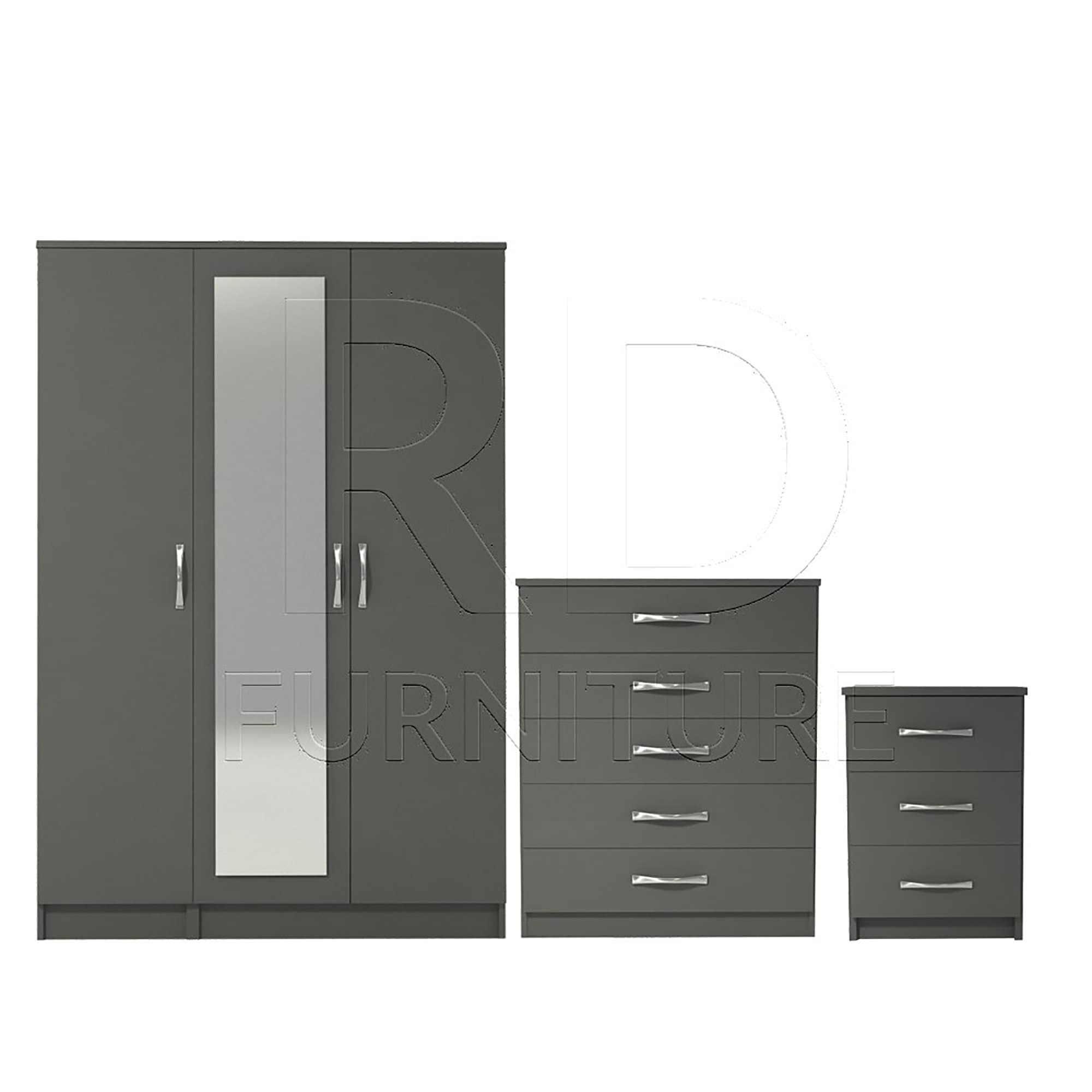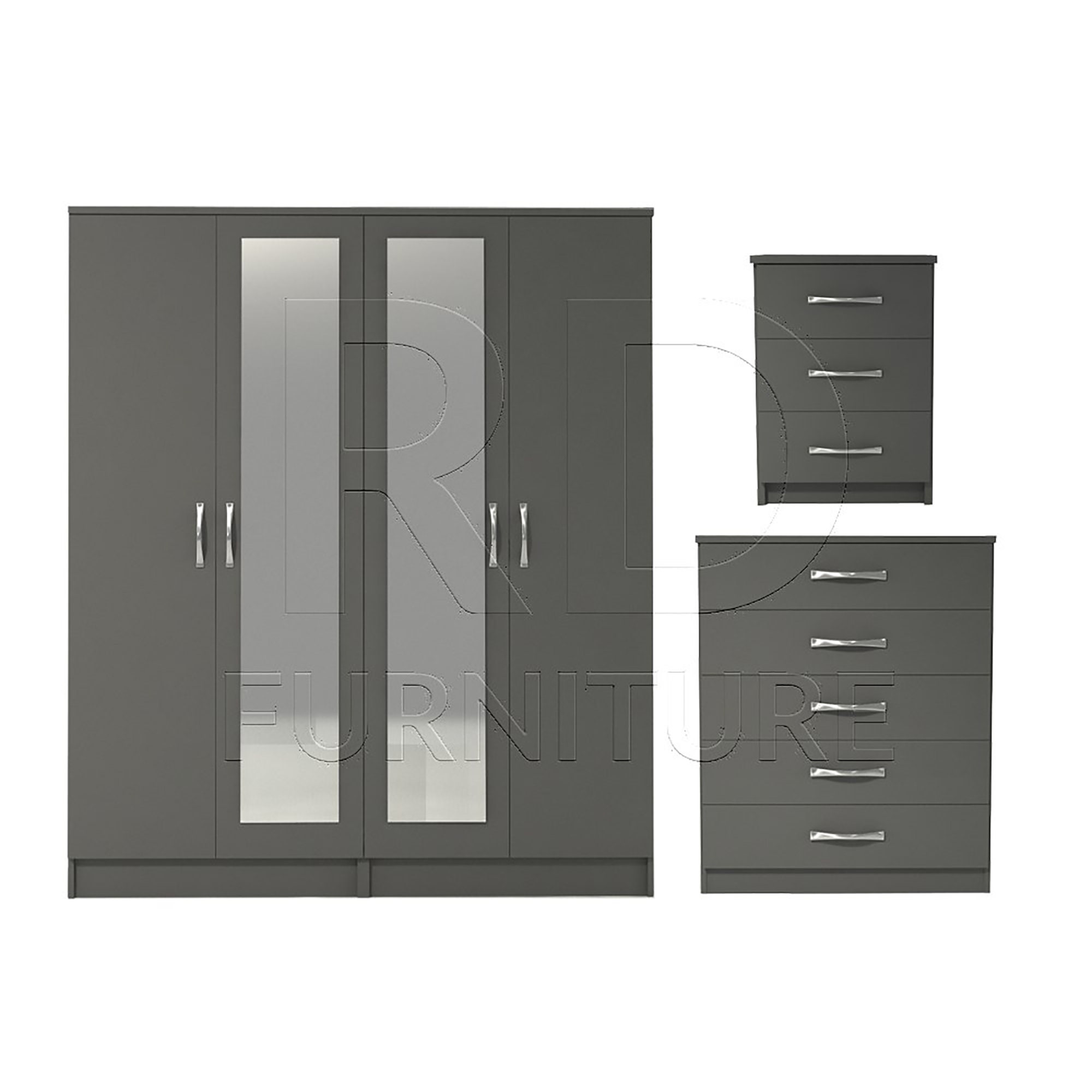 Bedroom set, Grey Bedroom Set, Grey Wardrobe, Mirrored Wardrobe, Gr...