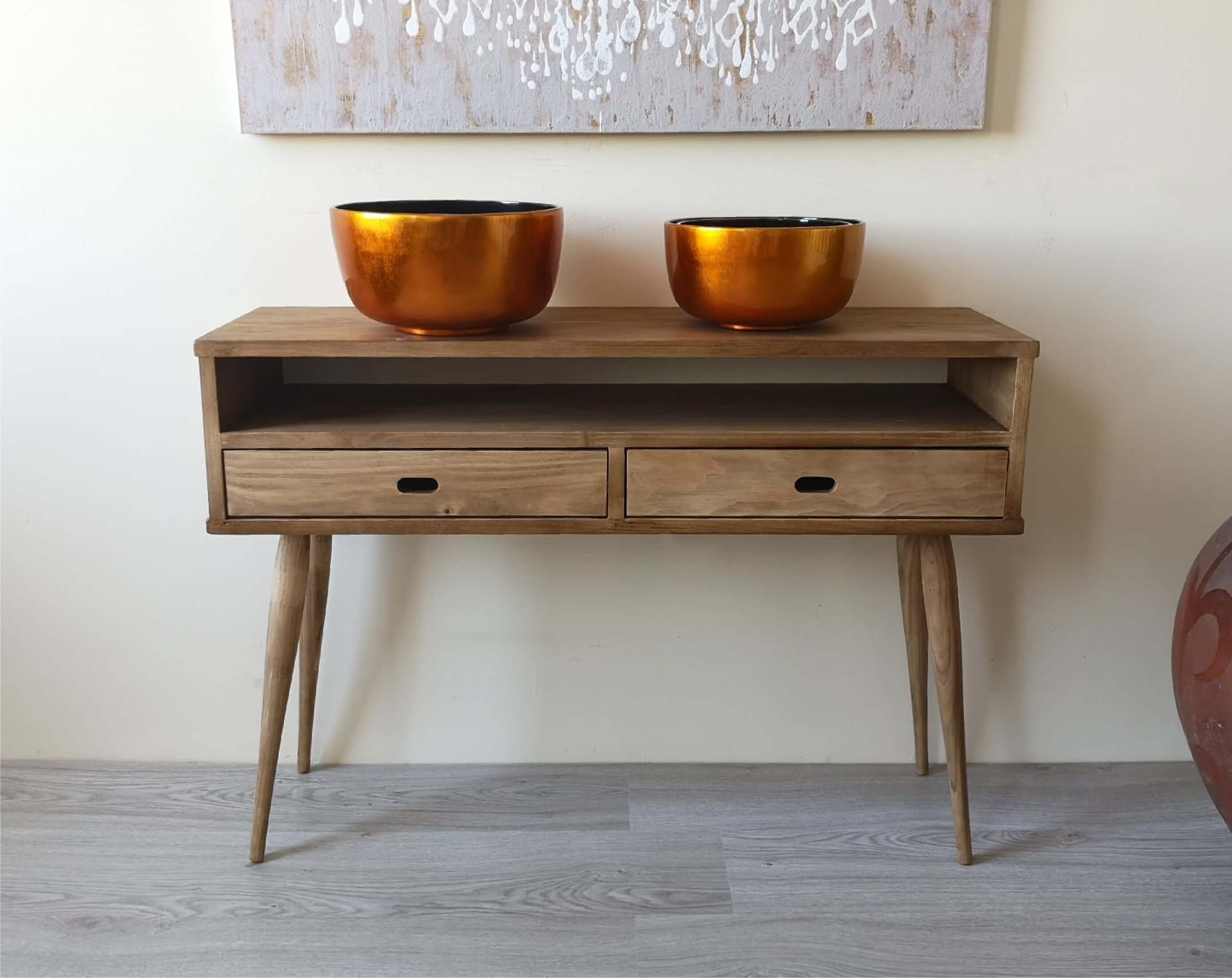 "Material Solid pine wood Description Pine console, with two drawers and a hole. As in all our ...