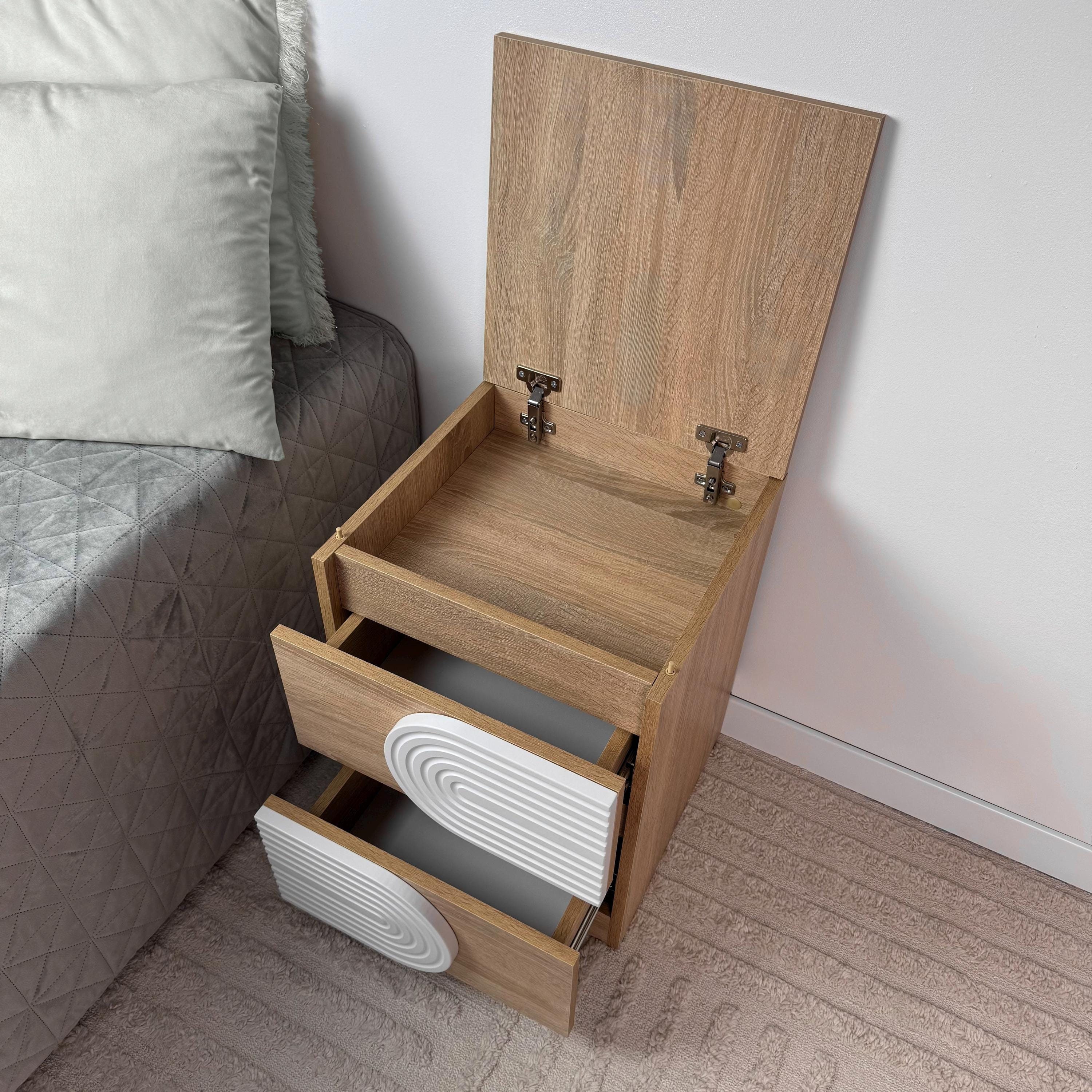 Mini Curved Bedside Table with 2 Drawers * Little Bedside Table Woo...