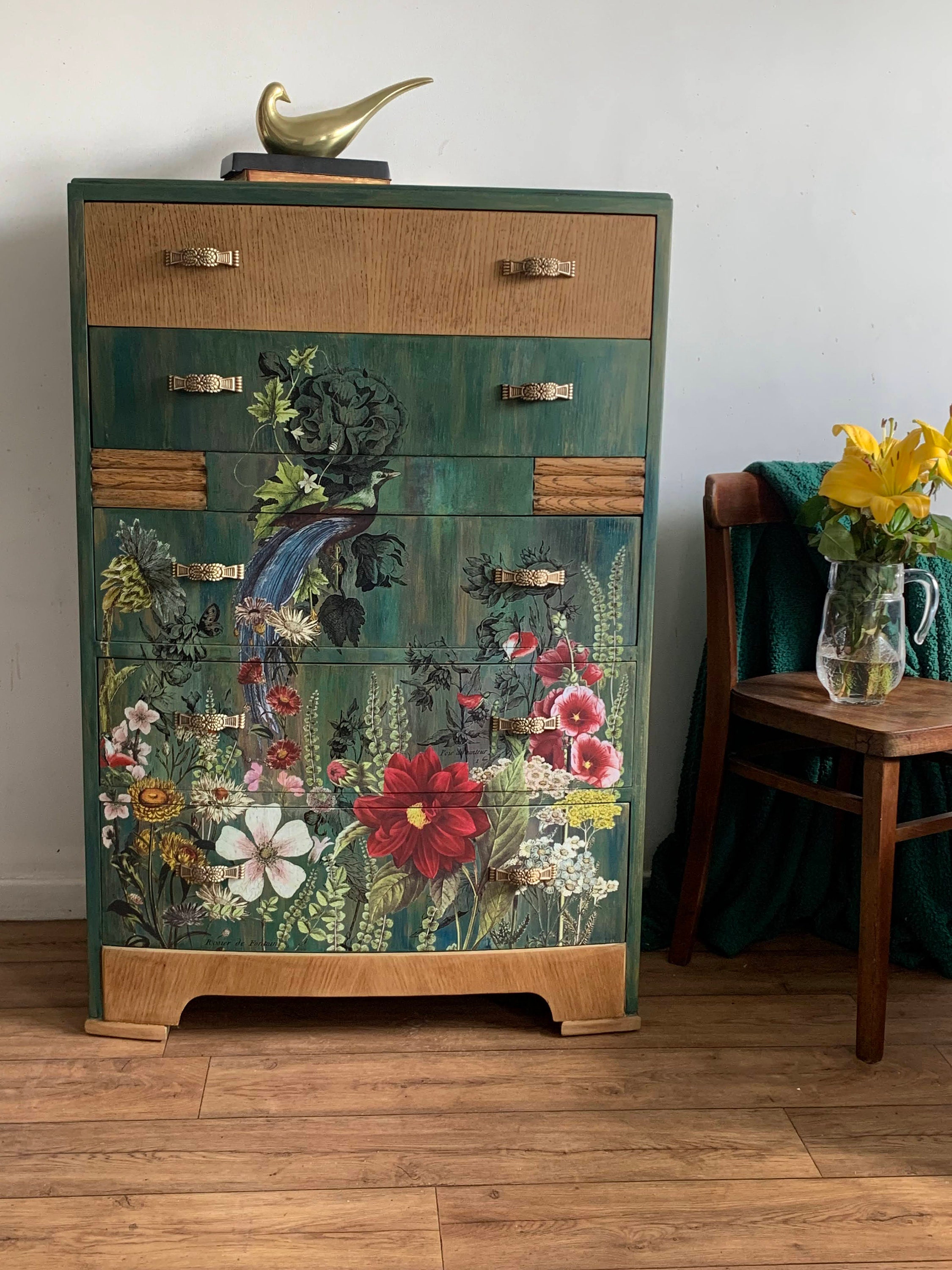 SOLD handmade furniture Unique Hand Painted 5 Drawer Chest of Drawe...