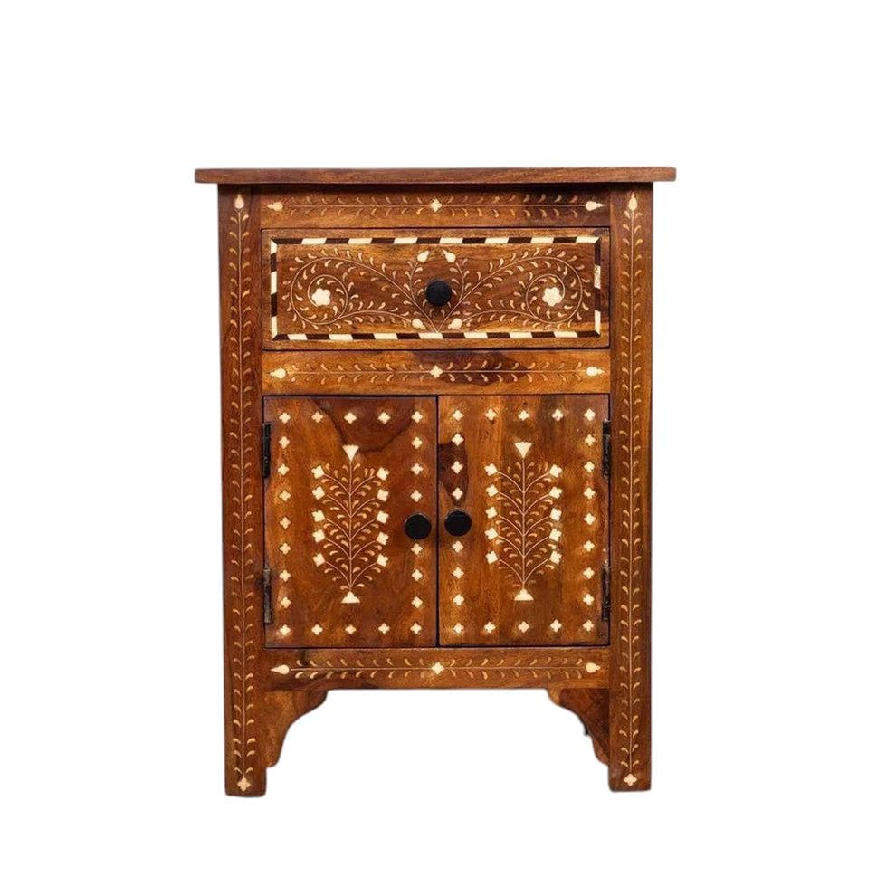 Wooden Bedside Table, Storage Table Wood Drawer, Bedroom Furniture,Indian Handmade Hand-Painted Cabi...