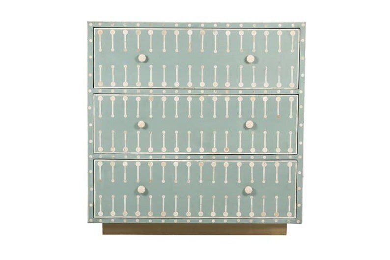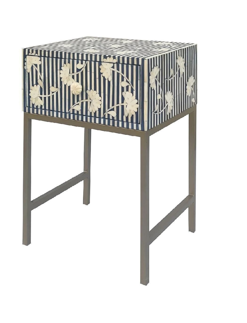 Bone Inlay 3-Drawer Nightstand | Handmade Bone Inlay Lamp Side Tabl...