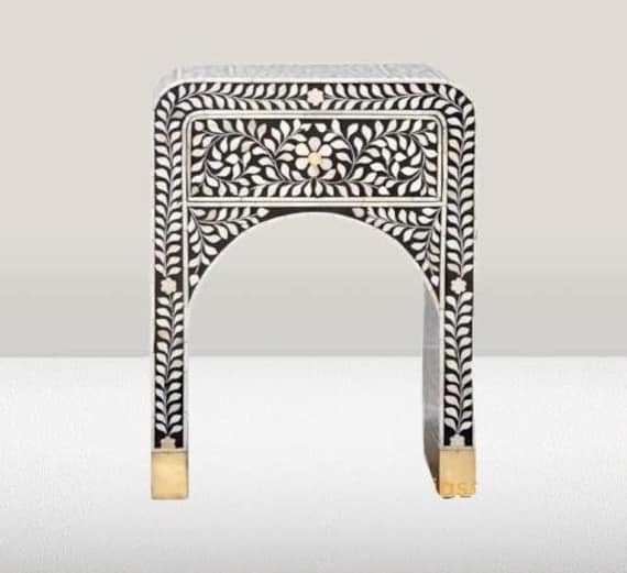 Bone Inlay Side Table - Handmade Floral Inlay End Table | Boho Acce...