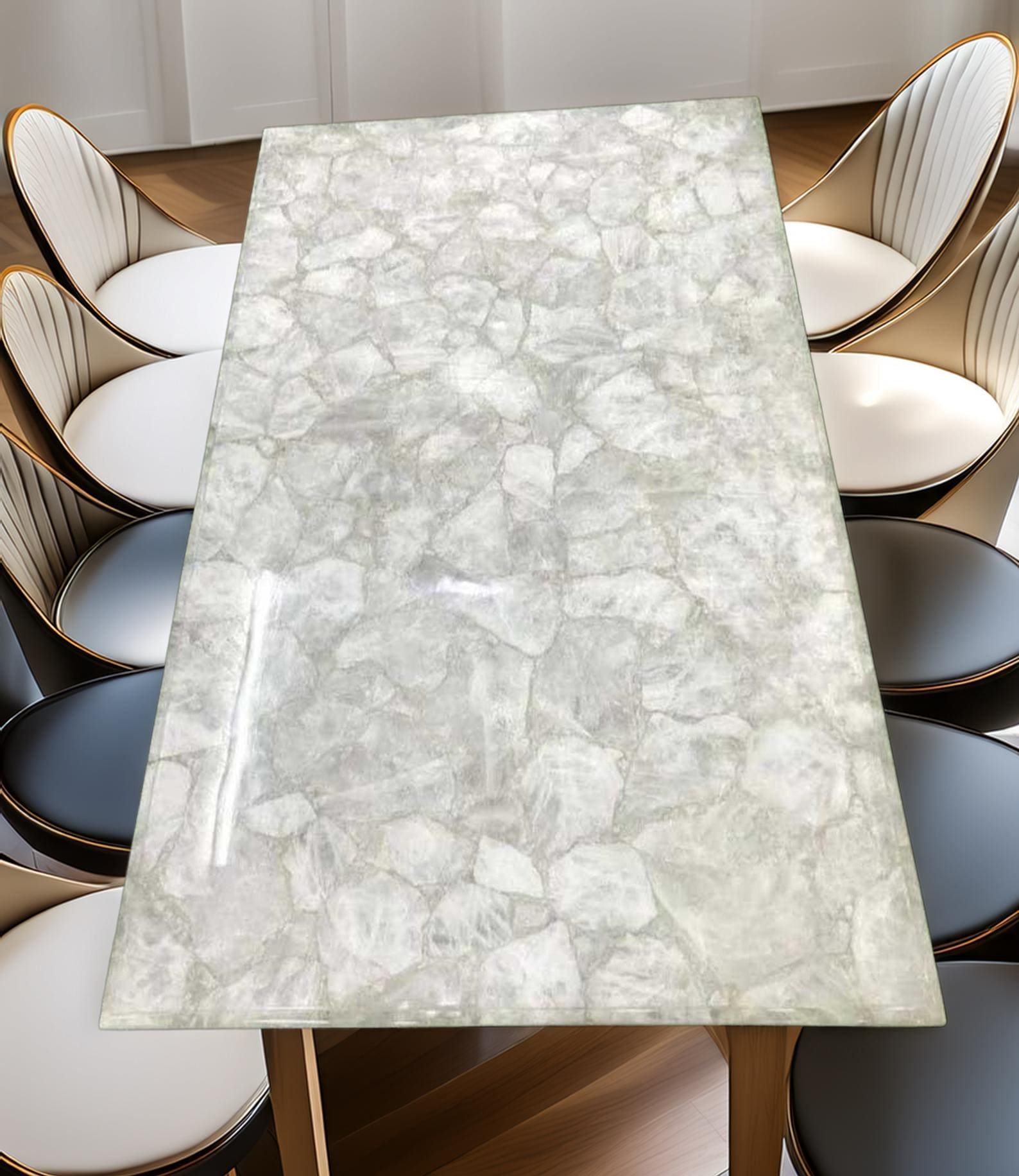 Luxury Light Green Stone Dining Table | Rectangular Crystal Marble ...