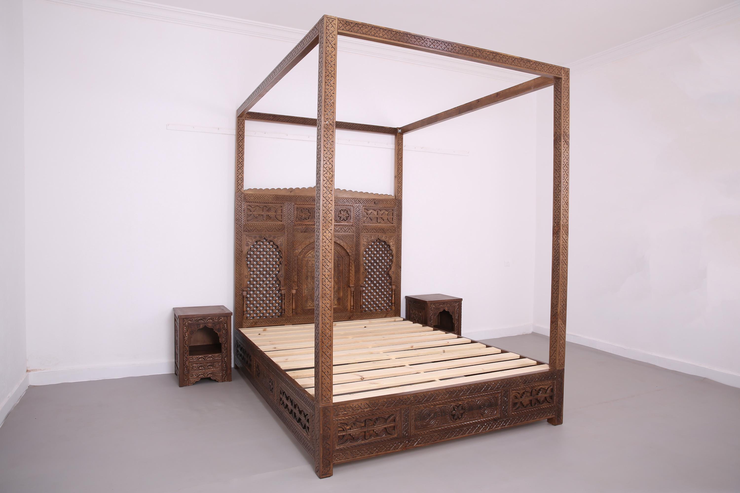 Transform your bedroom into an exotic oasis with our Moroccan Canopy Bed Frame, designed to bring wa...