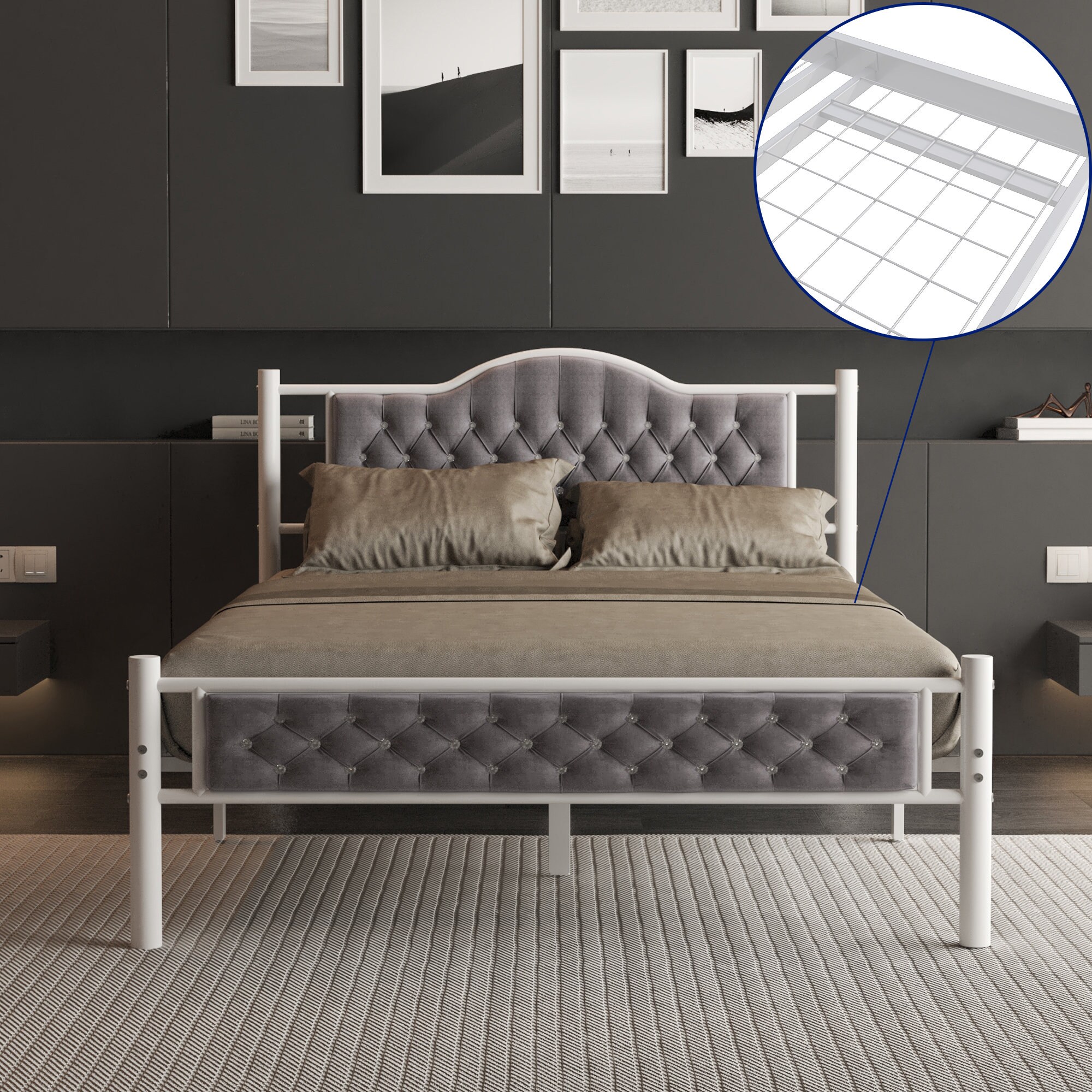 "Bella Collection Metal Bed Frame with Headboard and Footboard adds a stylish, sophisticated, a...