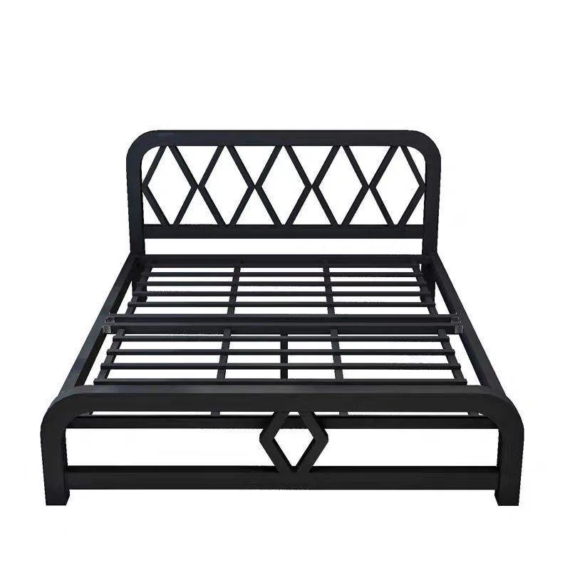 "FELIX Collection Black Metal Bed Frame with raised the head and foot metal slats adds a stylis...