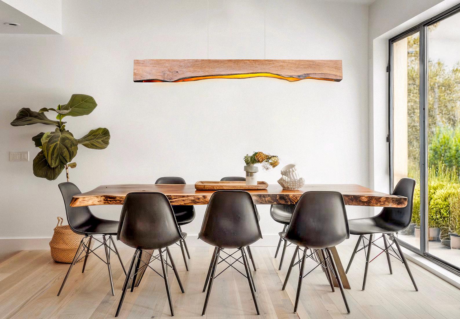 "Live Edge Olive Wood Pendant Light Fixture, Modern Chandelier For Dining Table, Rustic Unique ...