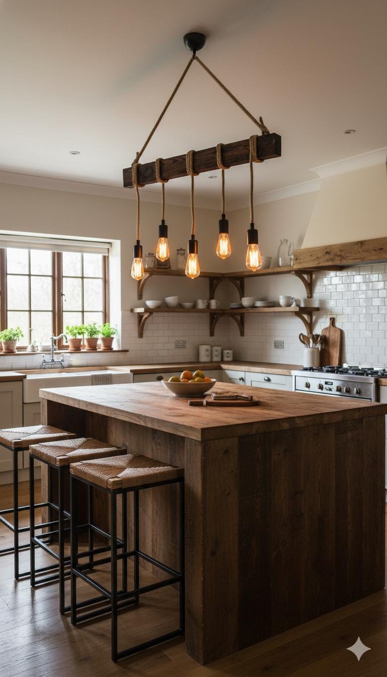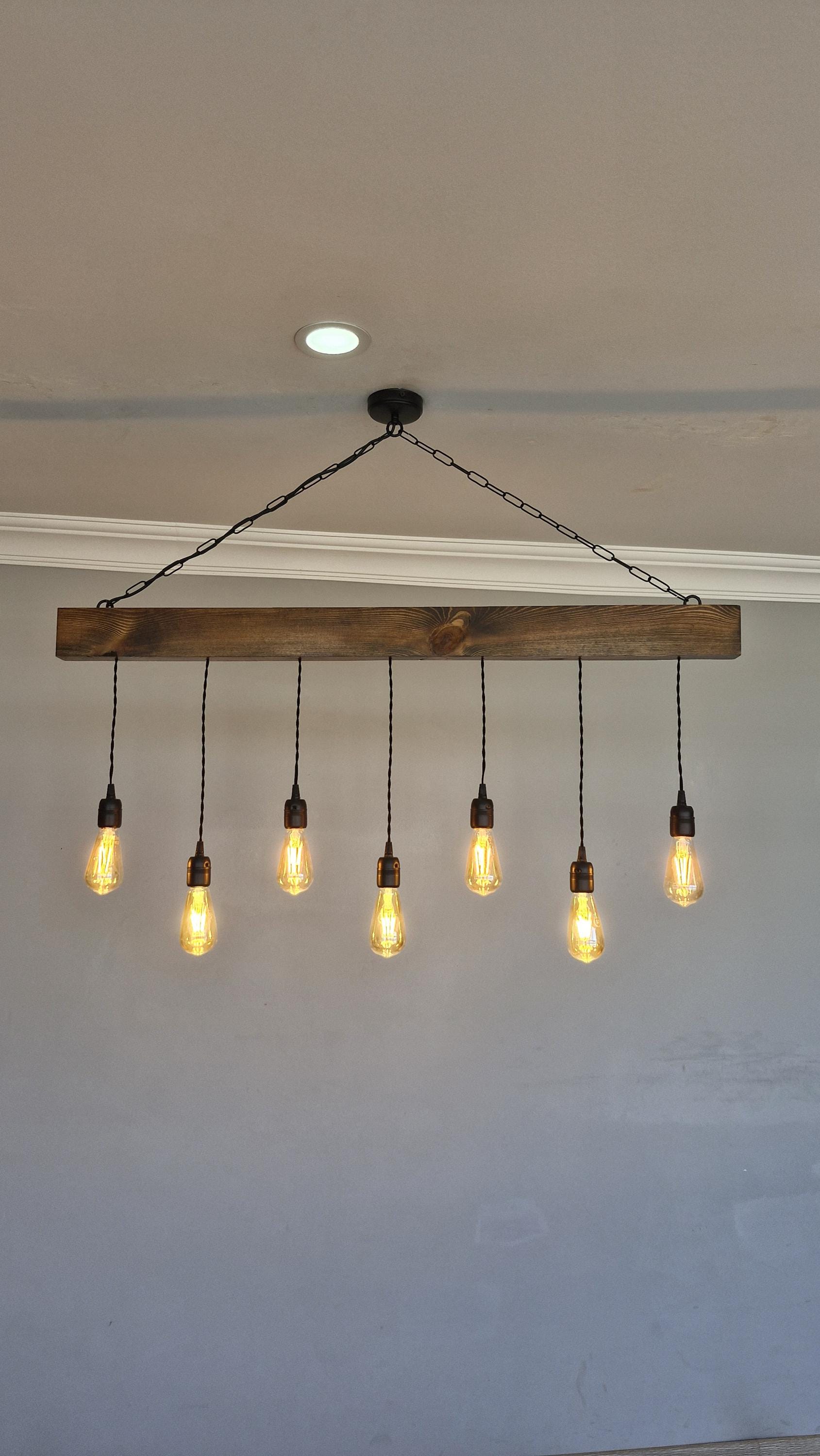 Rustic Farmhouse Chandelier | Wooden Beam Light Fixture | Kitchen I...