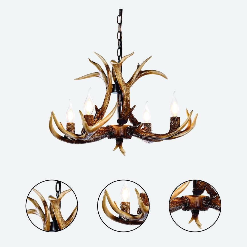 4 Lights Antler Chandelier Lighting Deer Lamp, Vintage Rustic Farmh...