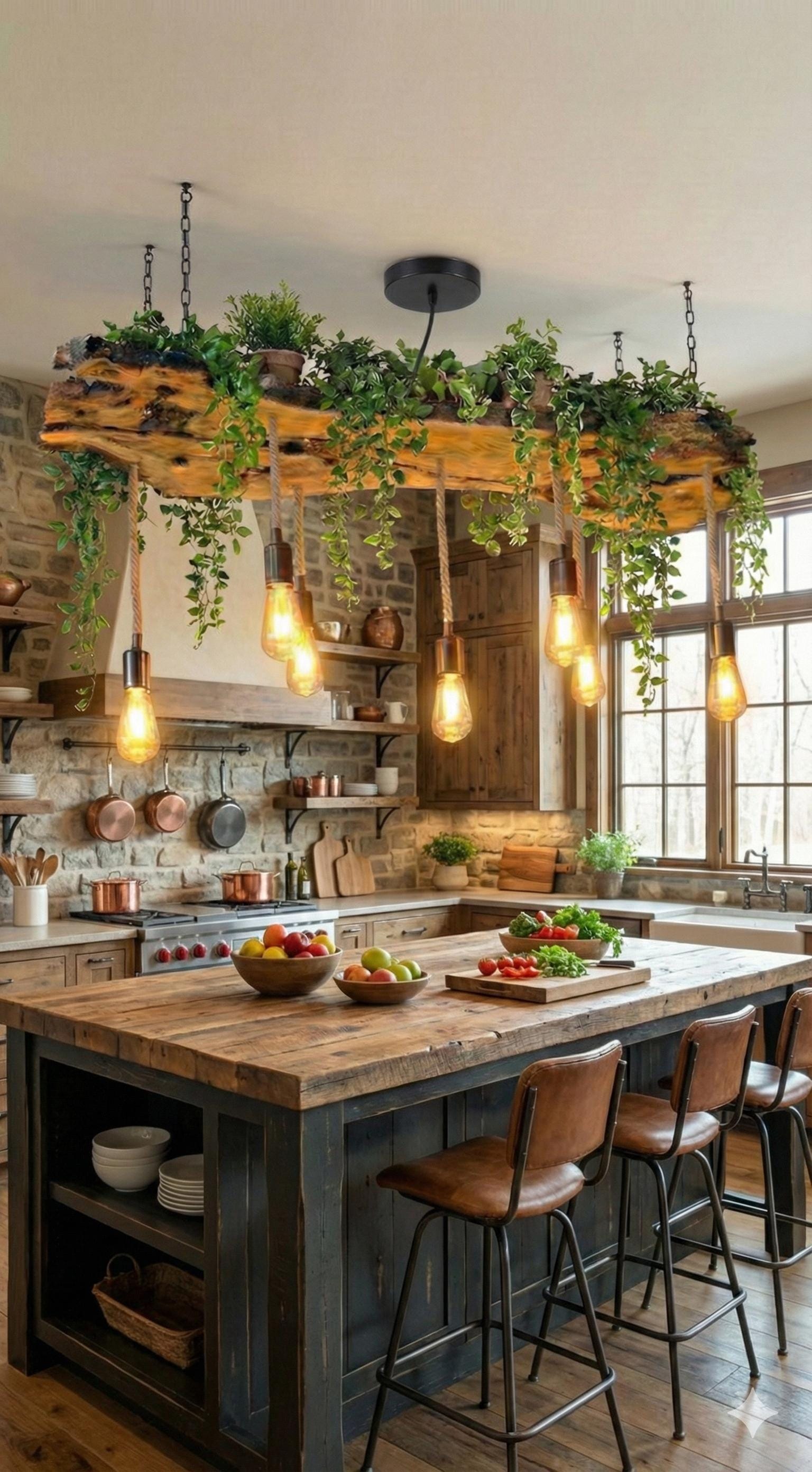 Live Edge Olive Wood Light Fixture For Kitchen Island, Rustic Uniqu...