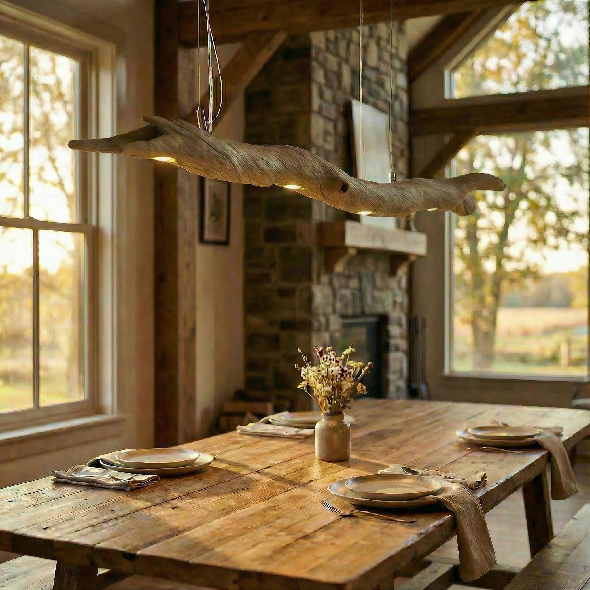 Driftwood Suspension Bar Light | Live Edge Wood Chandelier for Kitc...