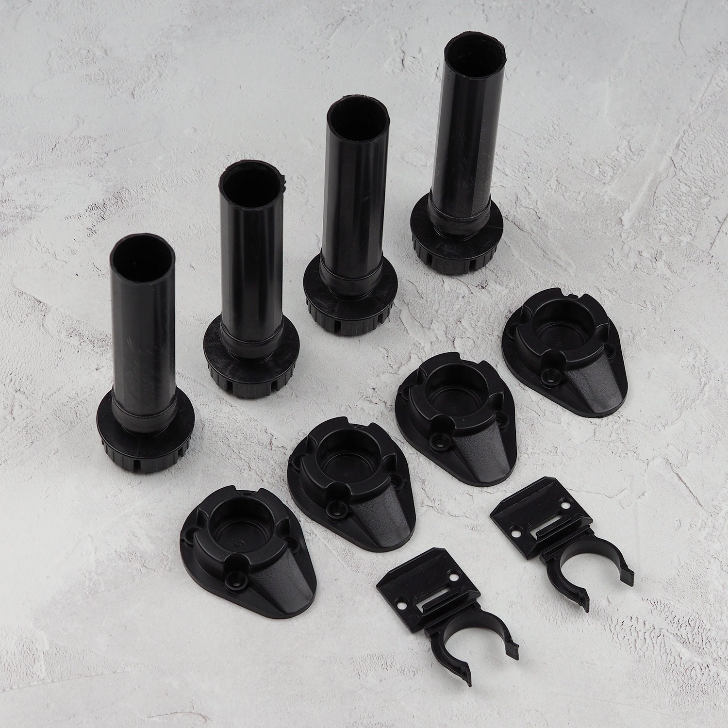 Kitchen Cabinet Leg Set Black Plastic 48mm Adjustable 4 Legs 4 Sockets 2 Clips Packed set of black p...