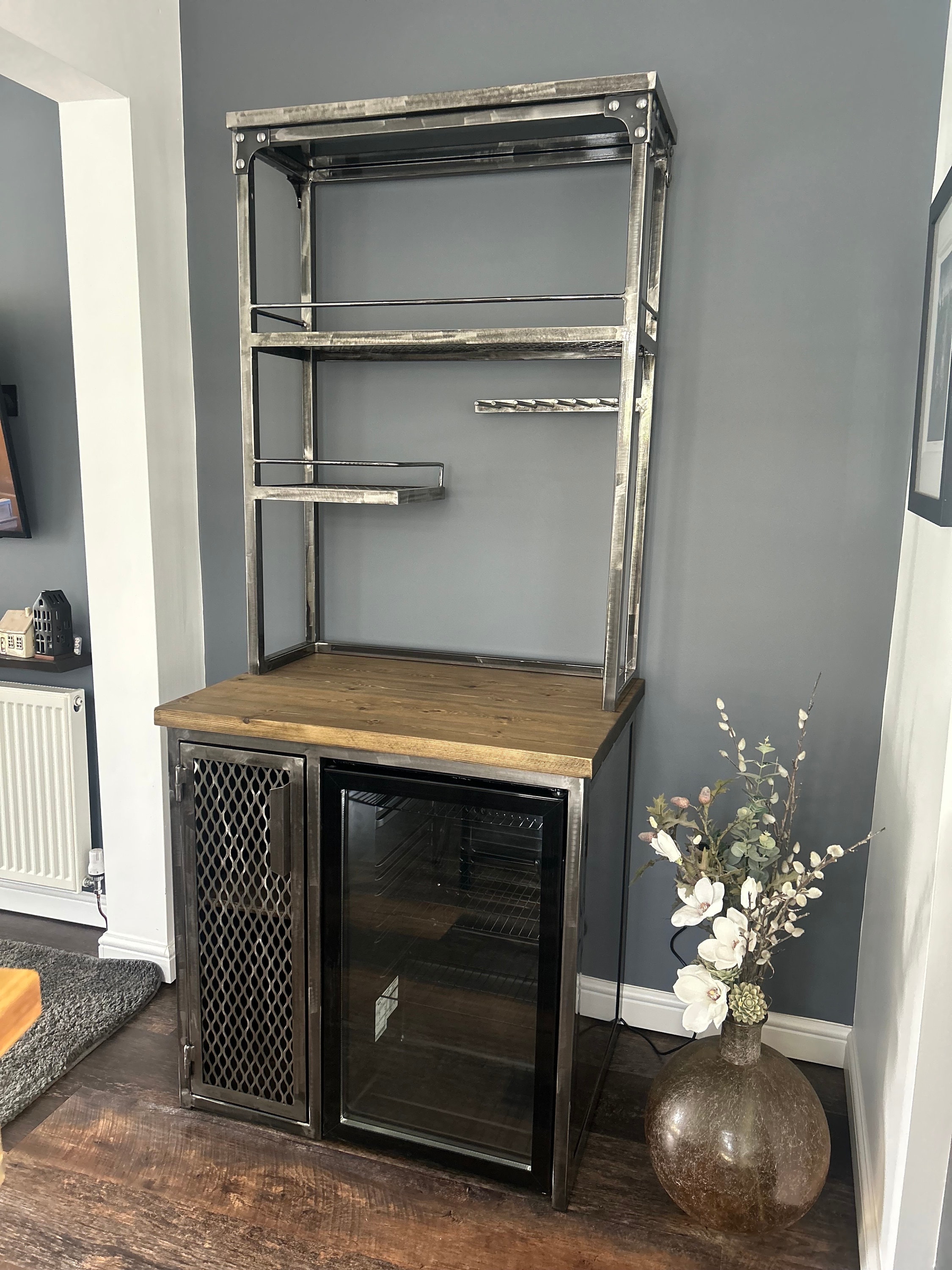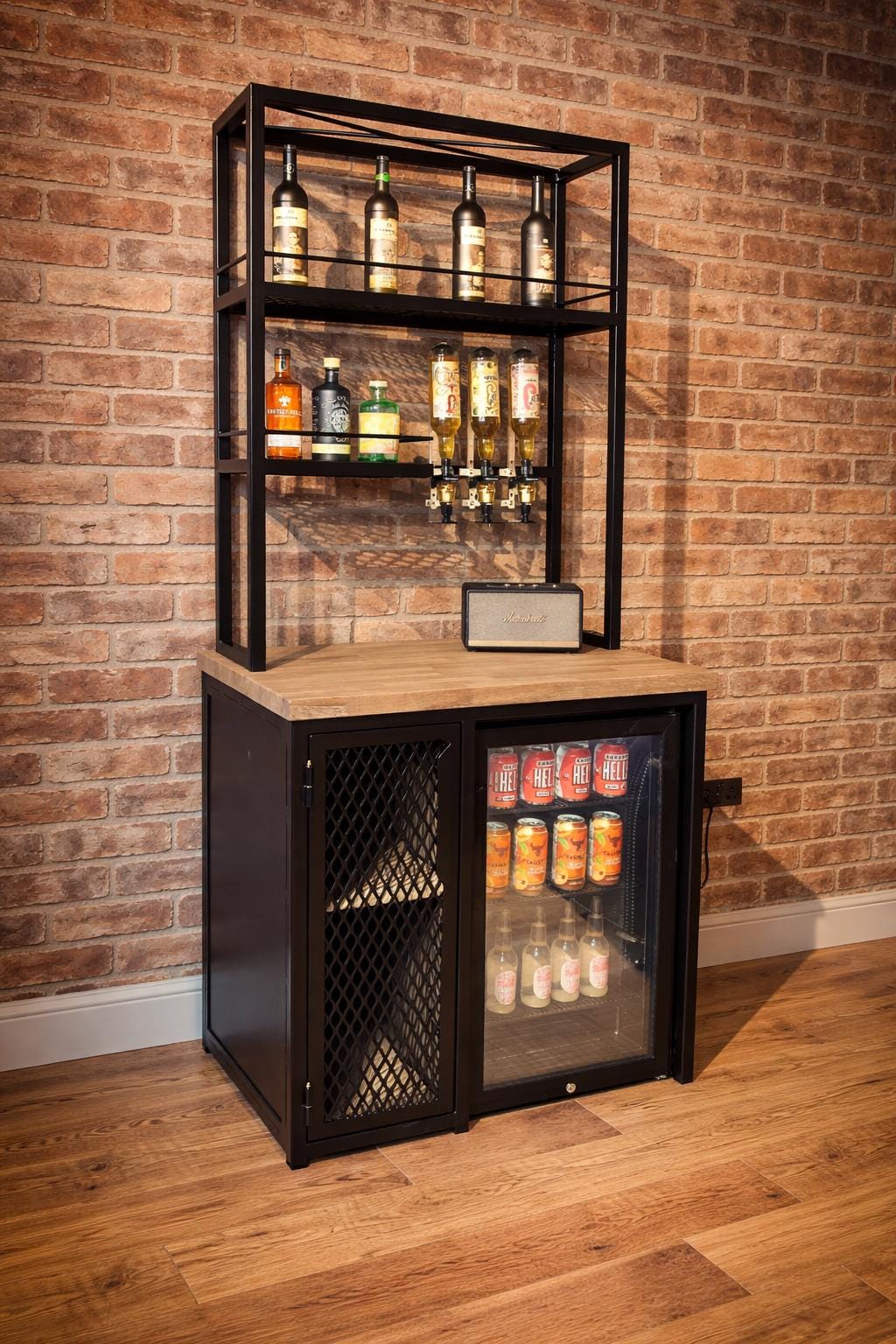 industrial home bar unit with fridge side unit drinks cabinet