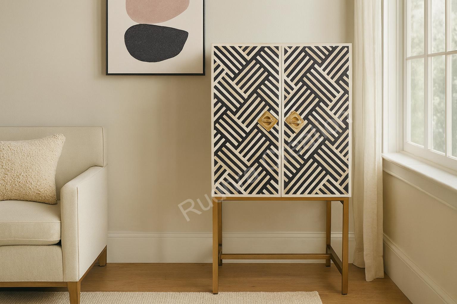 Bone Inlay Bar Cabinet | Optical Wine Storage Unit | Handmade Home-...