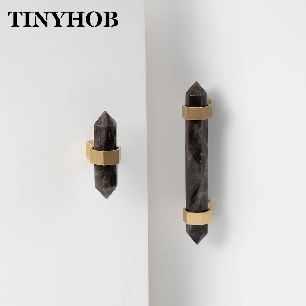 Luxury Natural Crystal + Brass Cabinet Handle and Knob Dresser Knob...