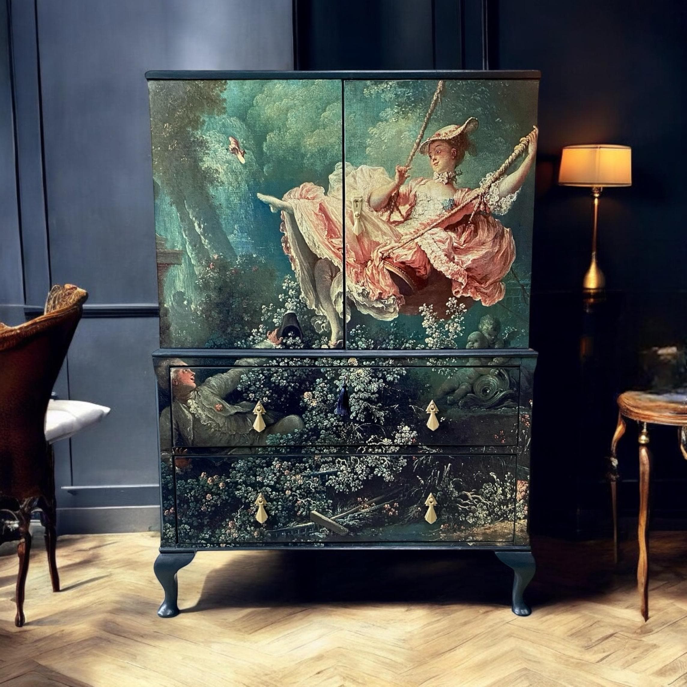 Introducing the Famous 'The Swing' Print by Jean-Honoré Fragonard Vintage Drinks Cabinet or t...