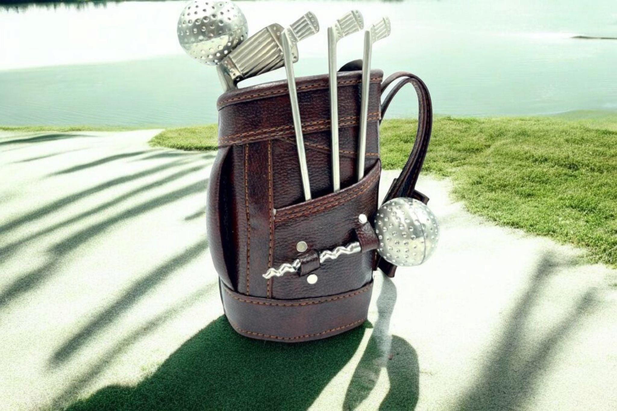 Golf Bar Set: Portable Leather Cocktail Kit with Tools