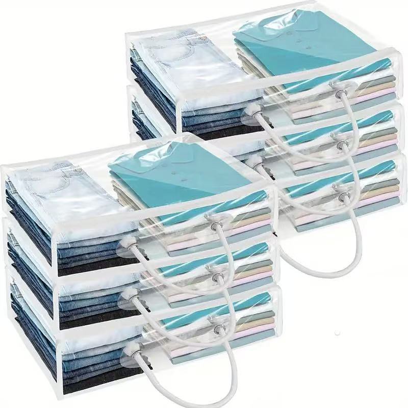 6-Pack Transparent Clothing Storage Bags with Zipper and Reinforced...