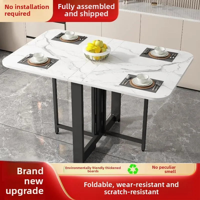 Folding Dining Table Household Small Apartment Simple Dining Table Multi-functional Imitation Rock S...