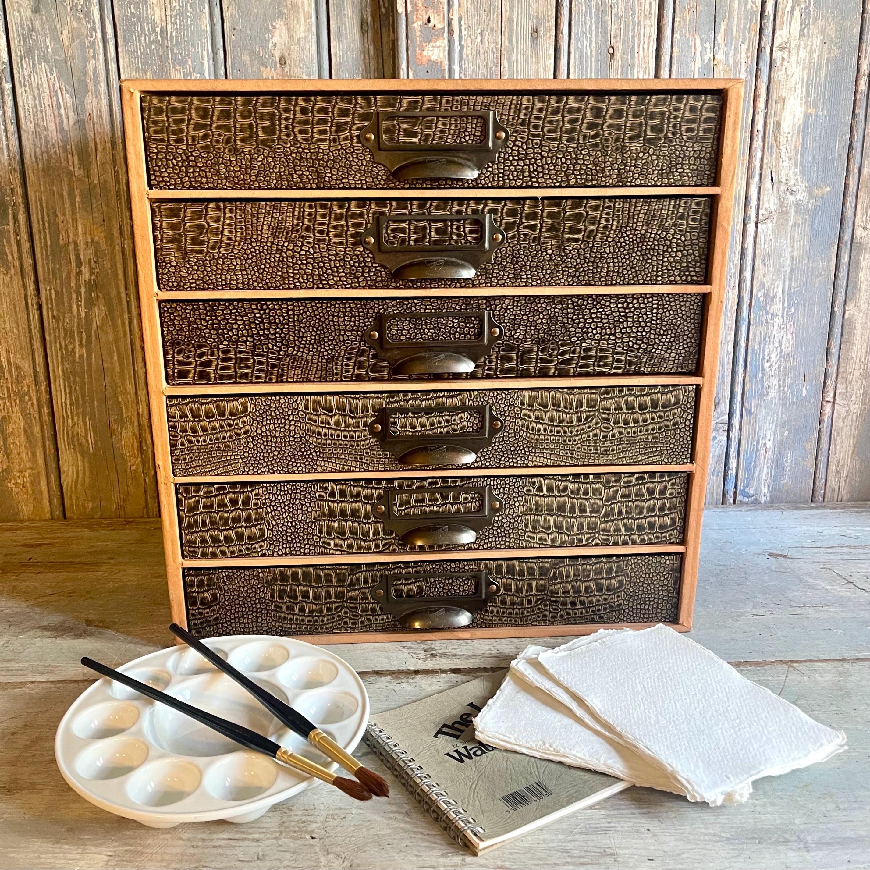 Vintage Desktop Filing Drawers-6 Drawers-Rich Brown Mock Crocodile ...