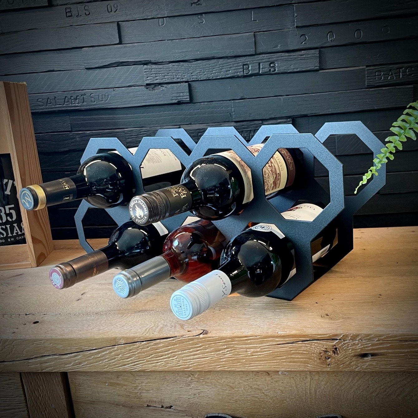 Modern Black Metal Wine Rack - Minimalist Bottle Holder for Wall or...