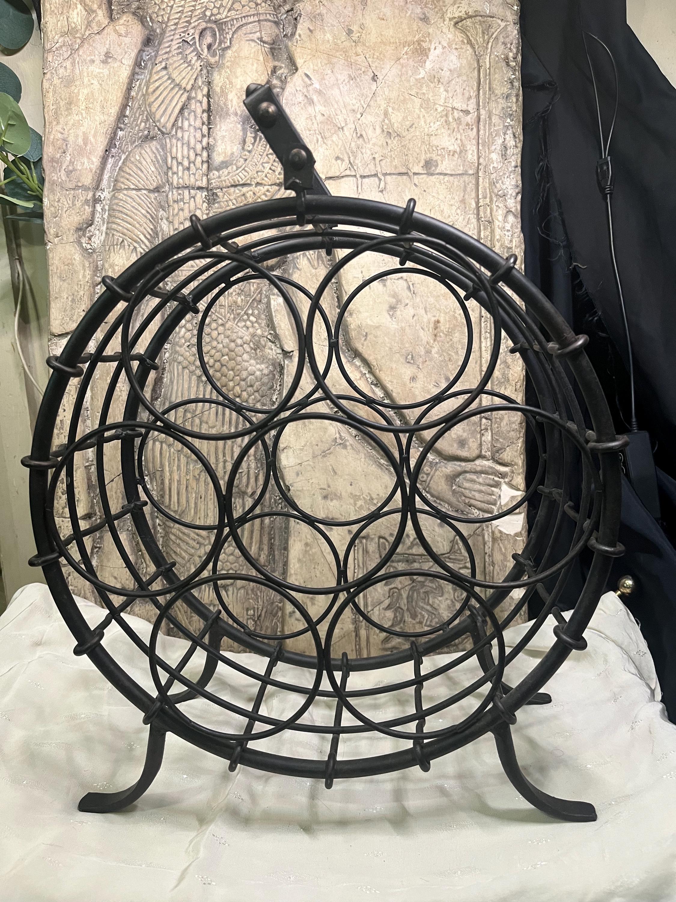 Mid-Century Wrought Iron Wine Rack - 1960s Circular Bottle Holder with Curved Legs --- **We always o...