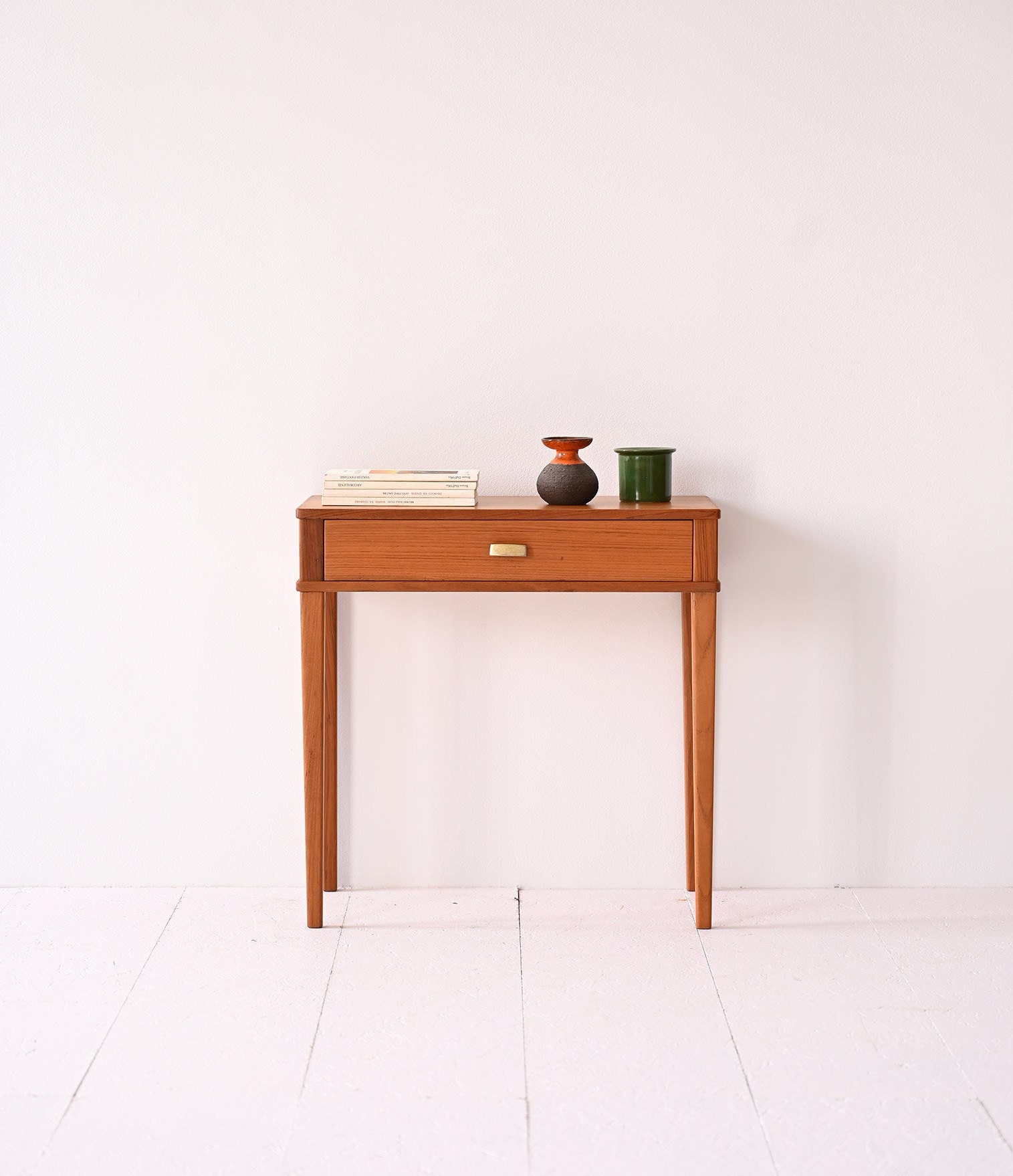 Vintage Teak Nightstand with Gold Metal Handle - Mid-Century Scandi...