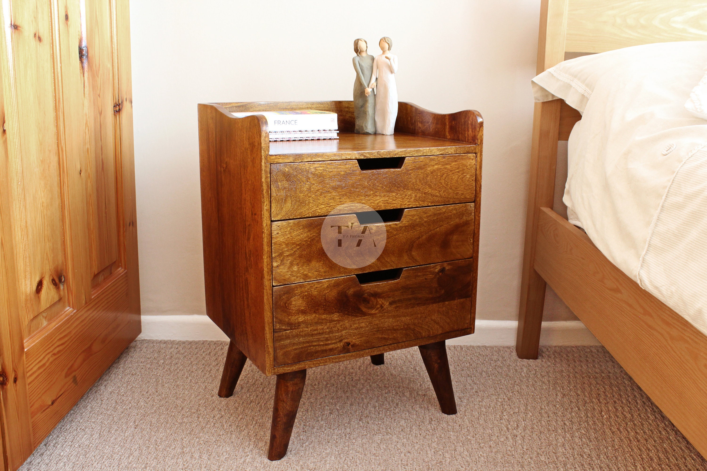 Bedside Table with Drawers * Mid Century Bedside Table * Bedside Ca...