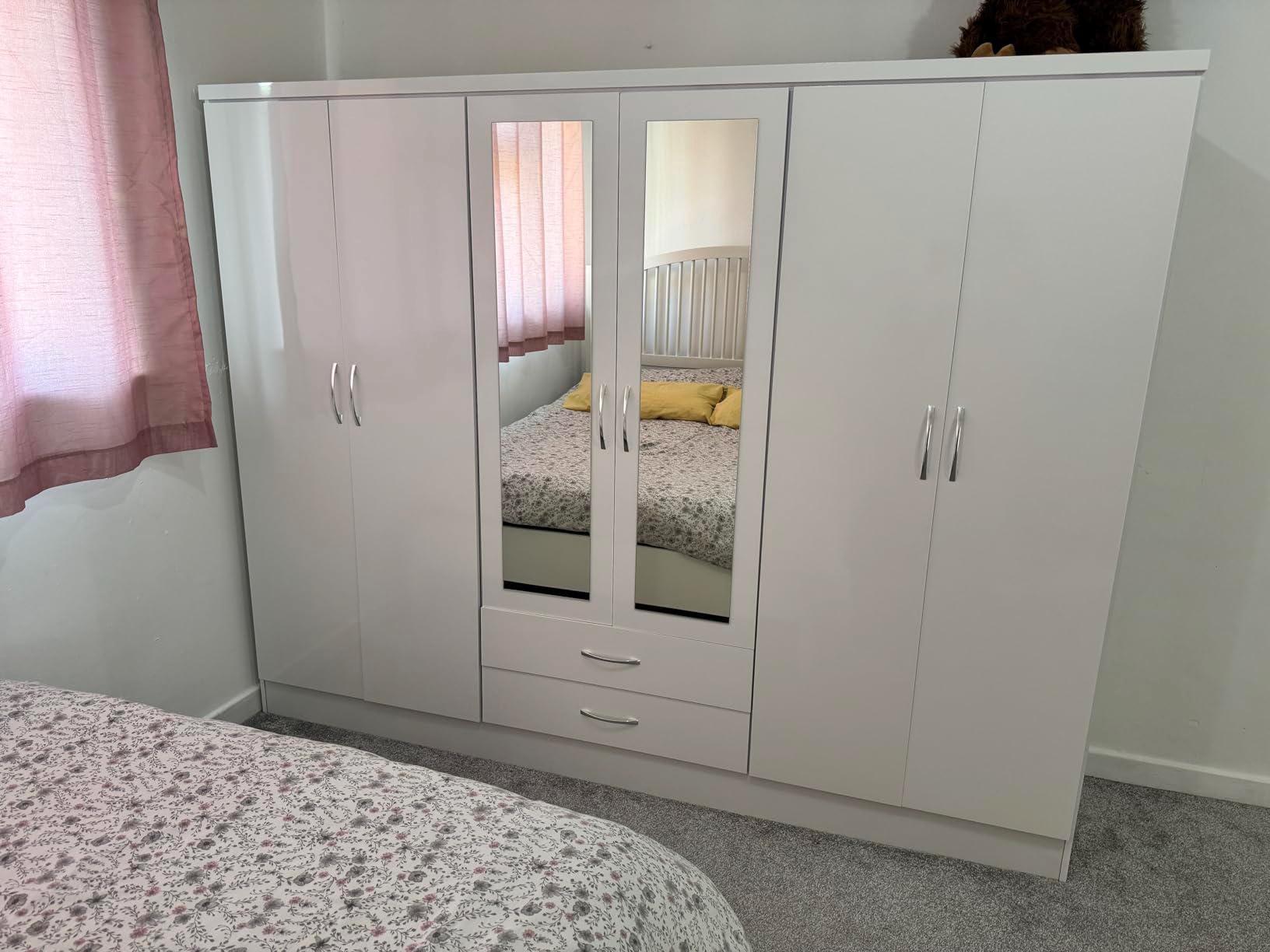 6 Door Wardrobe 2 Mirrors - Wardrobe Storage Drawers - Hanging rails And Shelves Fully Assembled 6 d...