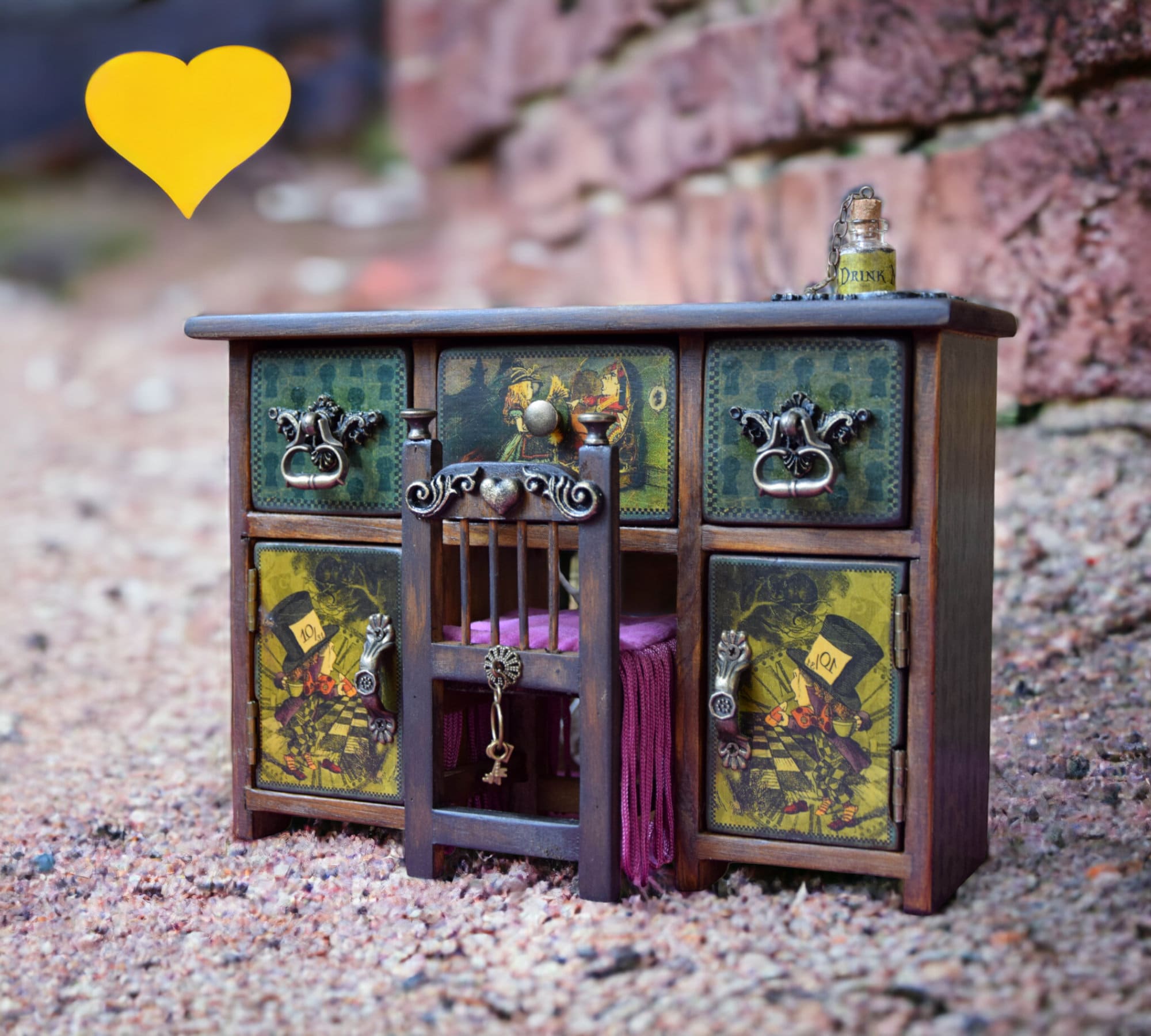 "Mini chest of drawers in the form of a desk with a chair \"Alice in Wonderland\". Fo...