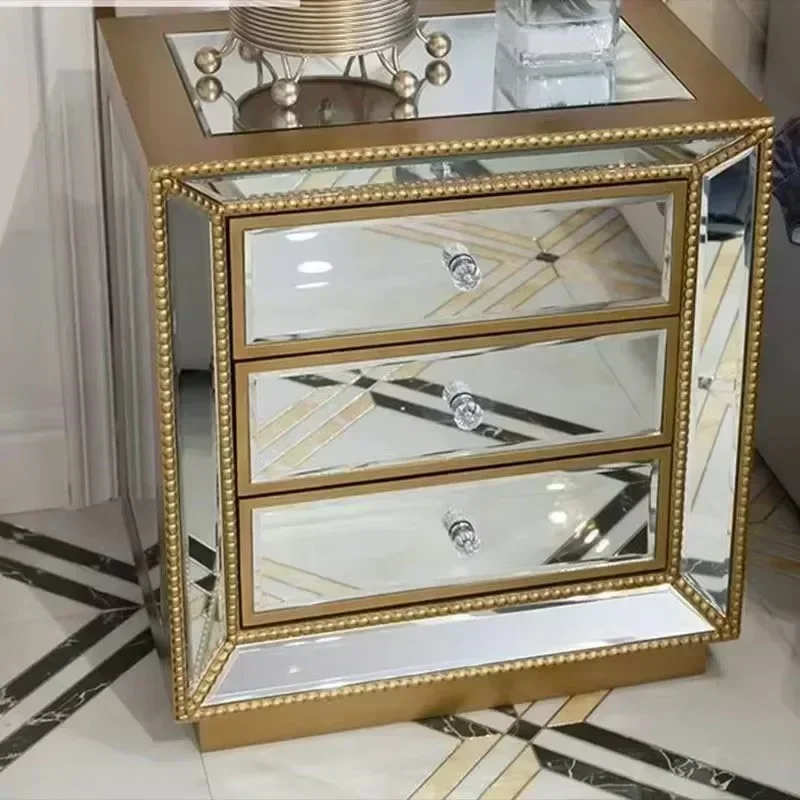 VINGLI Mirrored Nightstand Glass End Table, 23" W Silver Night Stand For Bedroom, Mirrored Beds...