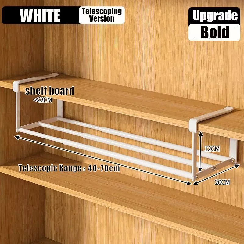 Metal Grid Wardrobe Pull-Out Basket Partition Layered Hanging Storage Rack No-Drill Clothes Underwea...