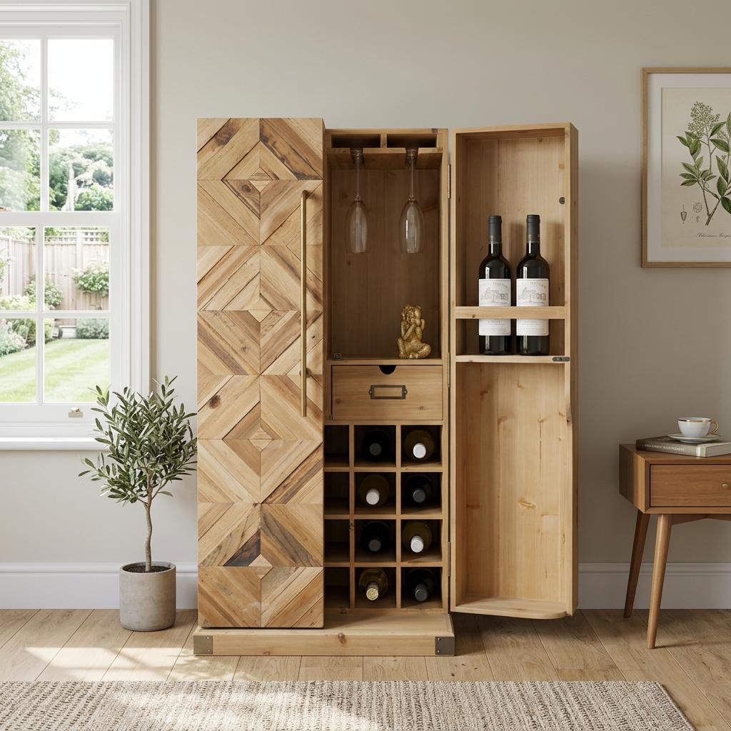 - A distinguished addition to any home, this Rustic Marquetry Style Solid Light Fir Wood Wine Bar Dr...