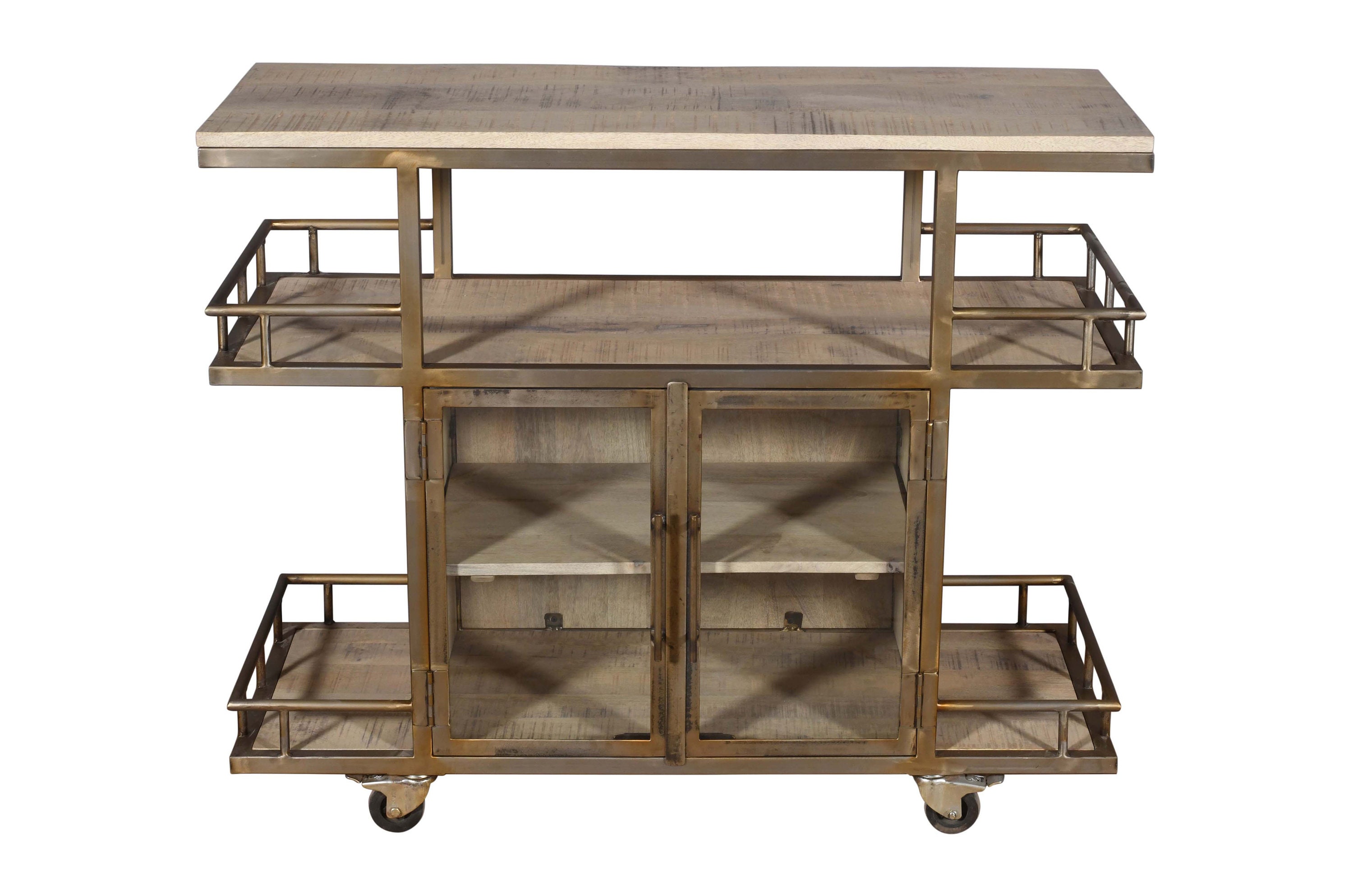 Modern Solid Wood And Metal Bar Cart / Wine Trolley With Double Doo...