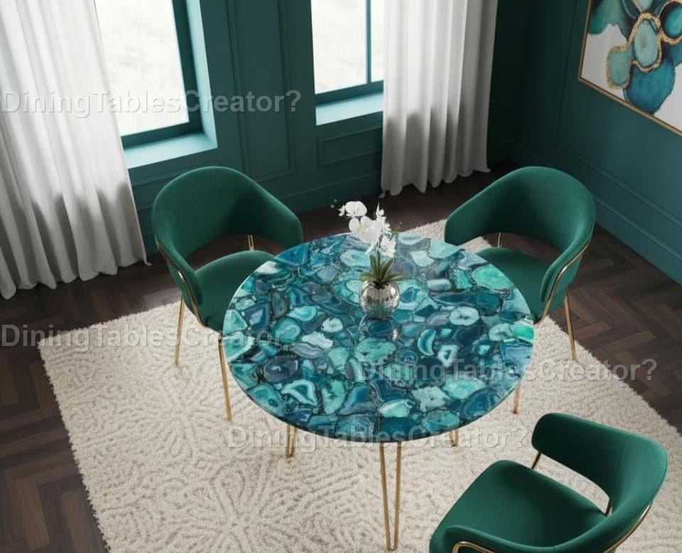 Welcome to DiningTablesCreator Transform your space with our Blue-Green Agate Round Table - a handcr...