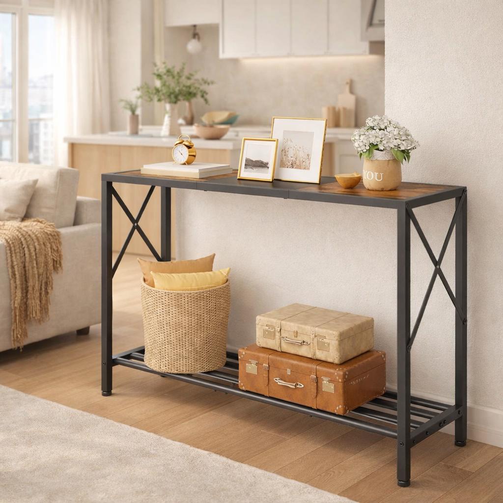 Wooden Console Table With Metal Frame | Narrow Console Table | Narr...