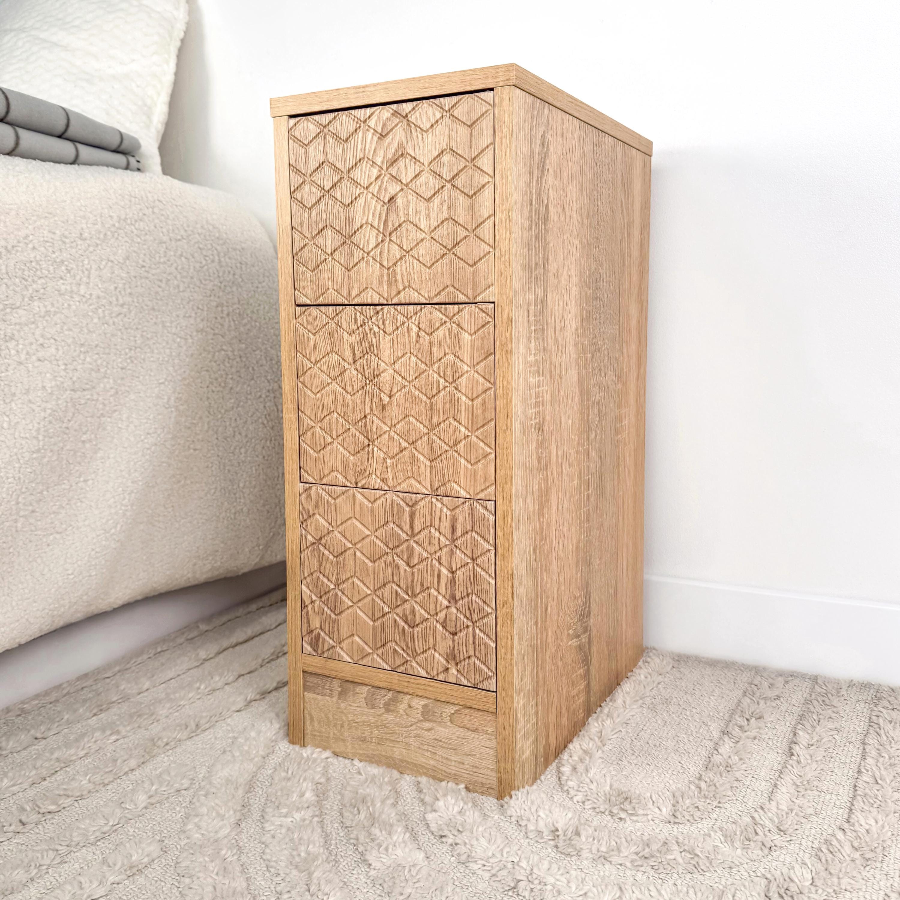 SMART 3 Drawer nightstand End table for small space Slim bedside ca...