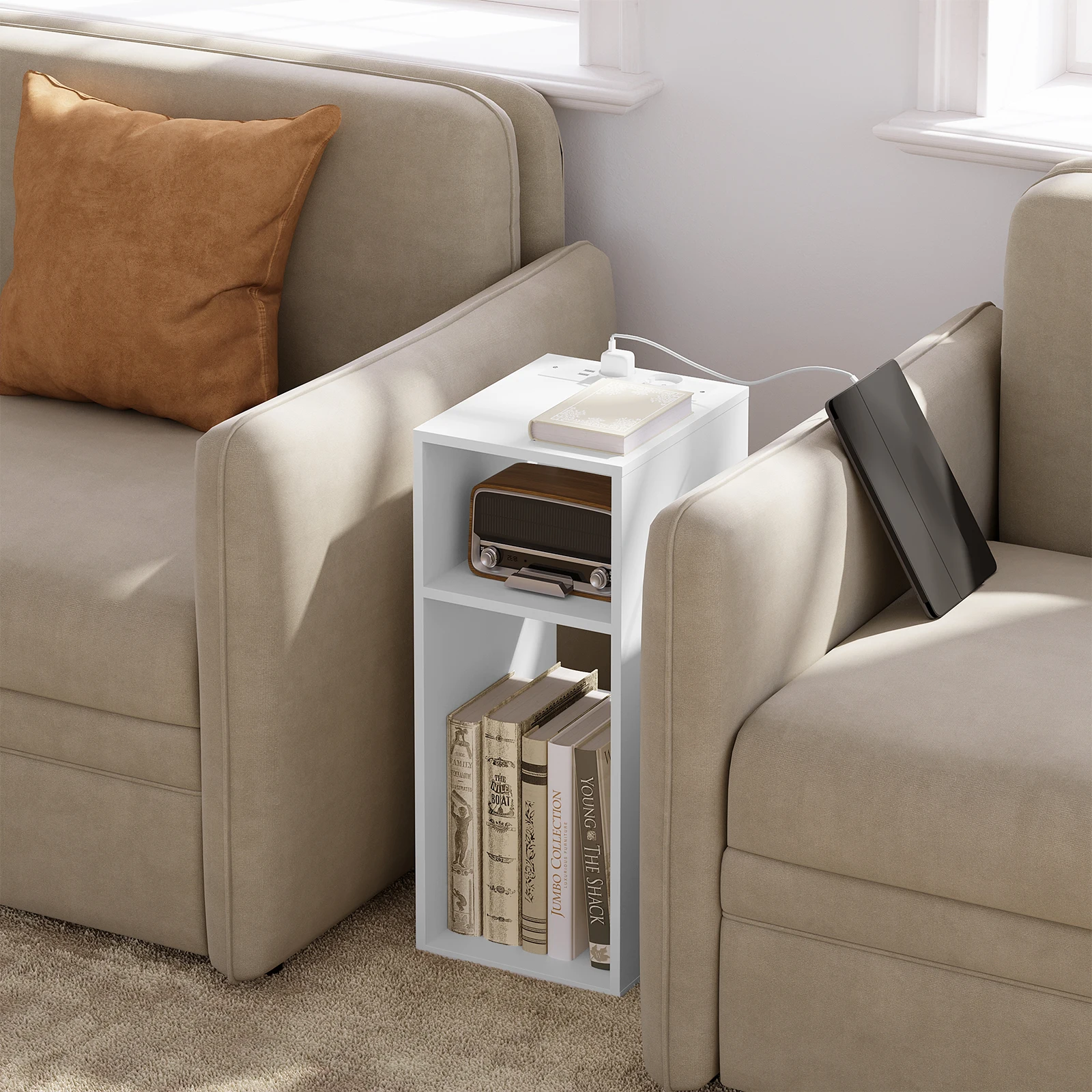 WOLTU White Bedside Tables 25x60x30cm Nightstand Narrow Side Table with 2 Sockets 2 USB Ports Coffee...