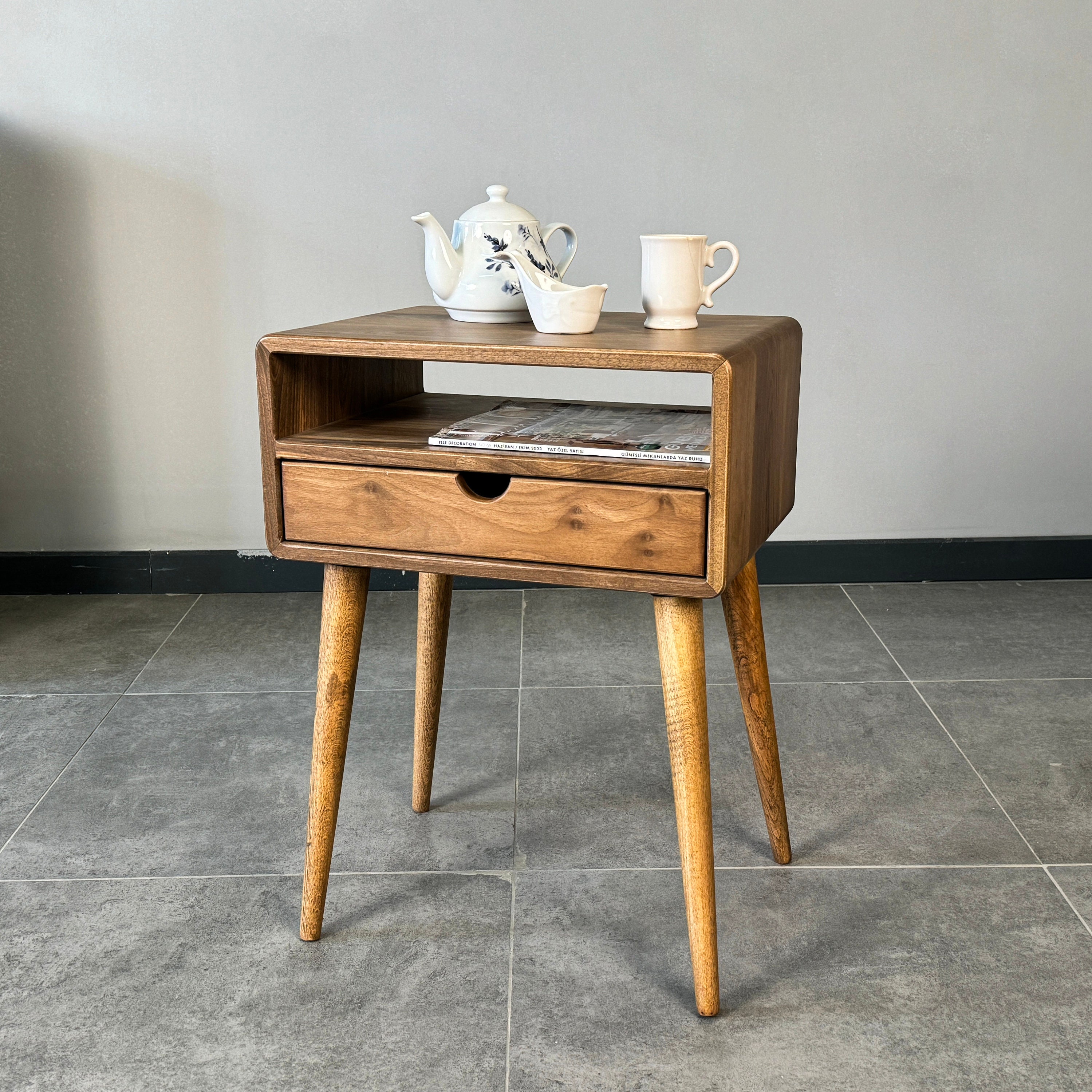 Walnut Nightstand with Drawer Bedside Table Scandinavian Style Narr...
